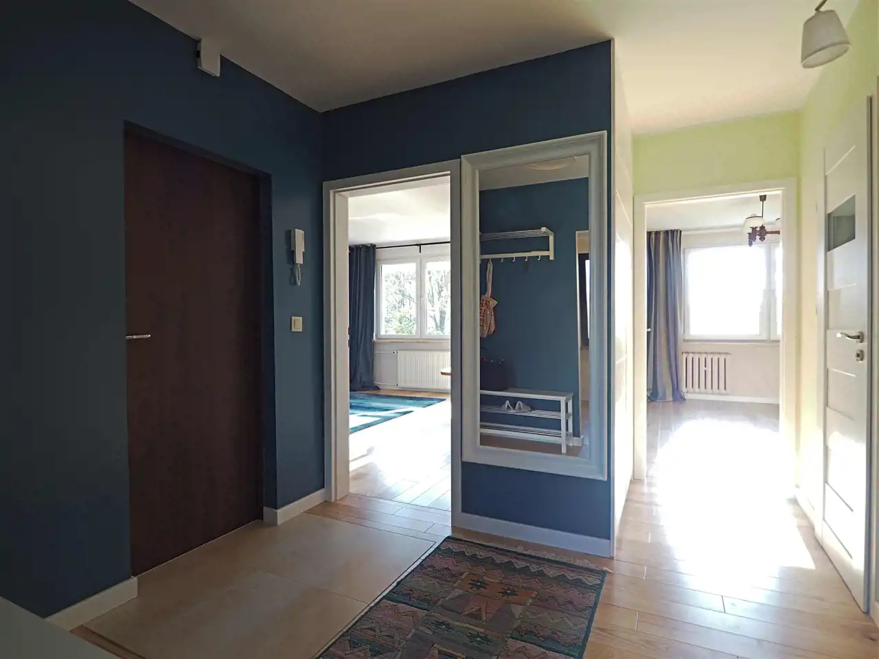 Mieszkanie w pełni umeblowane, we wszystkich pokojach podłogi drewniane. Salon wyposażony w komfortową rozkładaną kanapę, stół z fotelami, szafkę RTV oraz telewizor. Aktualnie w sypialni znajduje się łóżko dwuosobowe, szafa oraz regał. Kolejny pokój zaaranżowany na jadalnie wyposażony w sosnowy stół z krzesłami, bardzo gustowną witrynę oraz kredens. Kuchnia posiada wszelkie niezbędne sprzęty: lodówka z zamrażarką, piekarnik, płyta elektryczna, zmywarka, kuchenka mikrofalowa oraz pralkę. Łazienka wyposażona w kabinę prysznicową, szafkę z umywalką i lustrem. WC oddzielne .Przedpokój z pakowną szafą w zabudowie, szafką na buty oraz wieszakiem na ubrania.