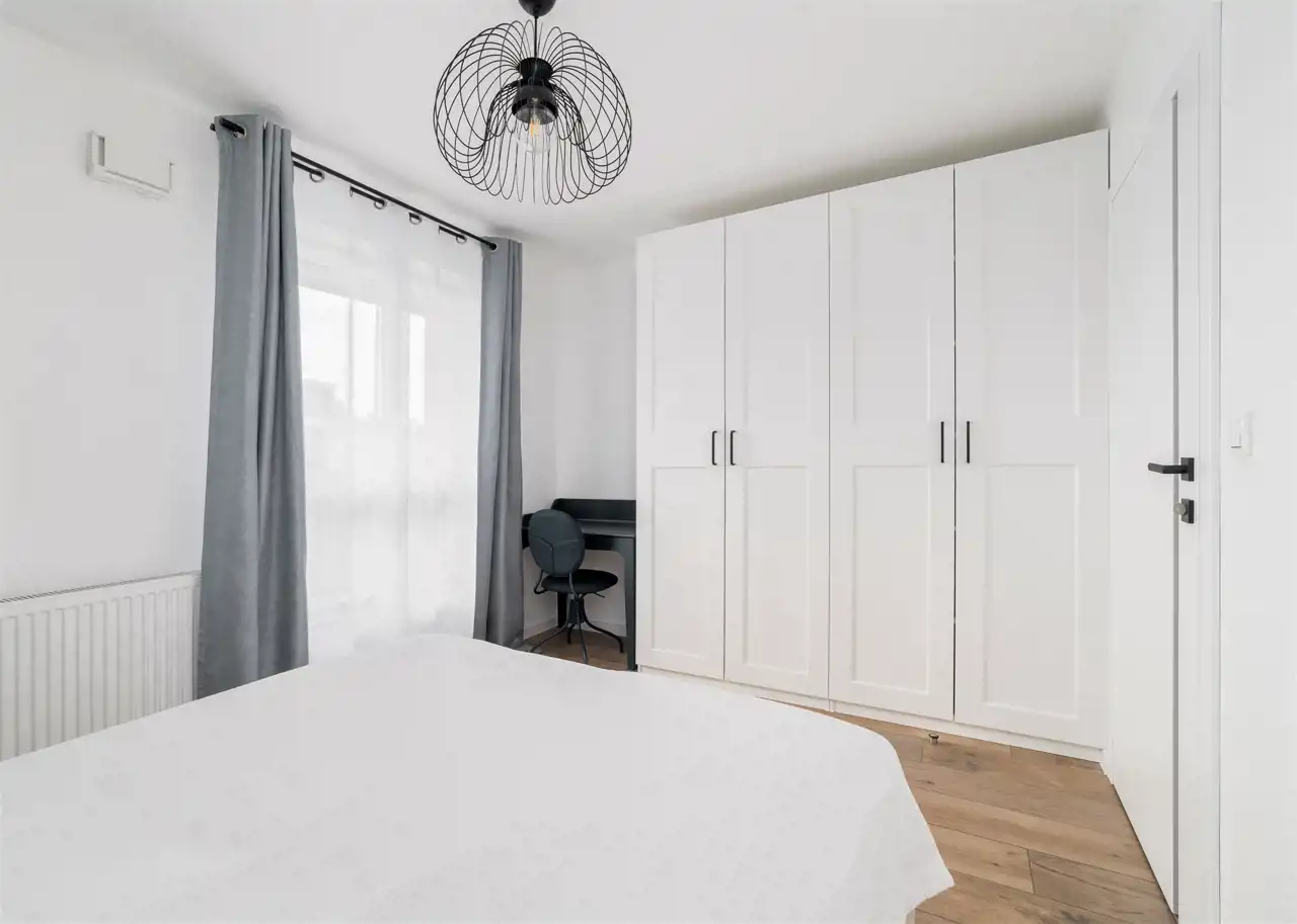 - przytulną sypialnię z pojemną szafą oraz biurkiem;