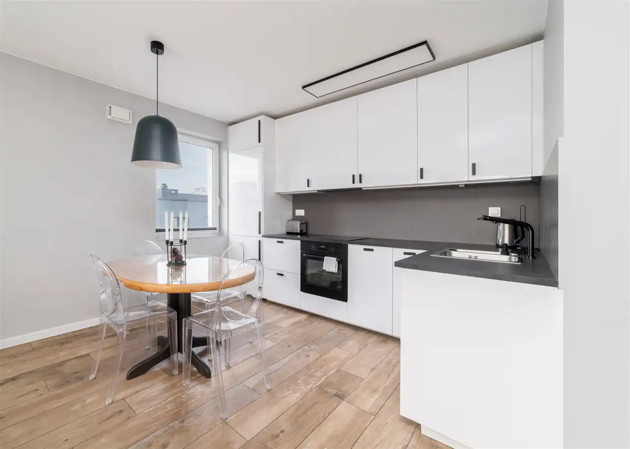 - aneks kuchenny wyposażony w płytę indukcyjną, piekarnik, lodówkę z zamrażarką, zmywarkę;