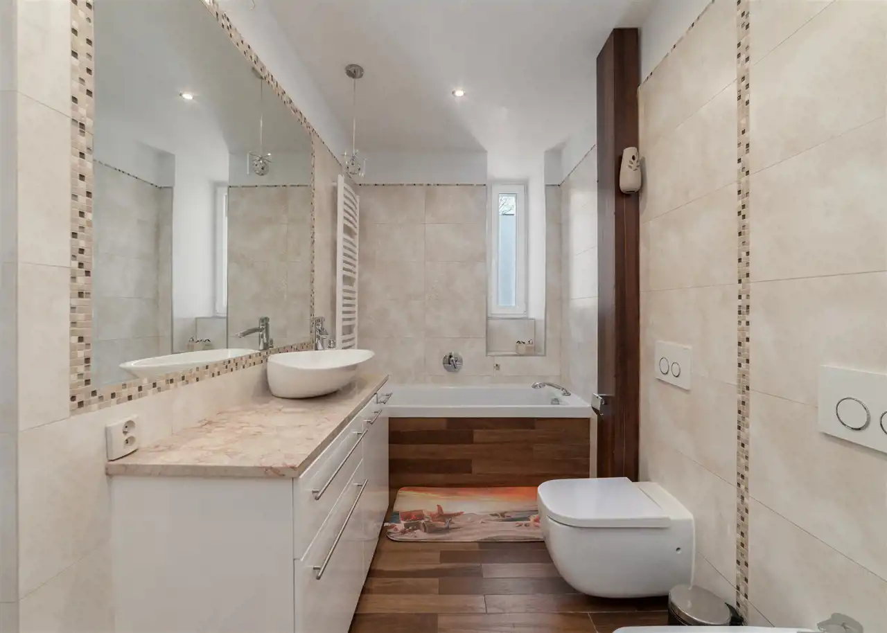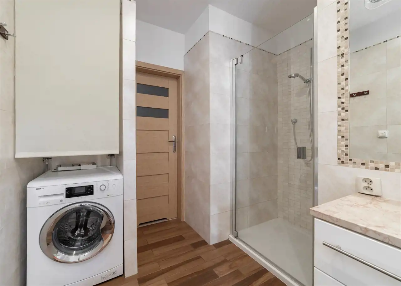 - łazienkę z WC (wyposażoną w prysznic, wannę, bidet oraz pralkę);