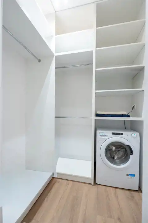 Salon wyposażony został w komfortową sofę wypoczynkową, szafkę RTV, TV, stół z krzesłami, rolety w każdym oknie. Aneks kuchenny posiada wszystkie niezbędne sprzęty: lodówkę z zamrażarką, zmywarkę, płytę i piekarnik, okap. W sypialni łóżko dwuosobowe, z komfortowym wygodnym materacem. Przestronne pomieszczenie - garderoba z pralką. W łazience kabina z deszczownicą, toaleta, umywalka z szafką i lustrem w zabudowie.