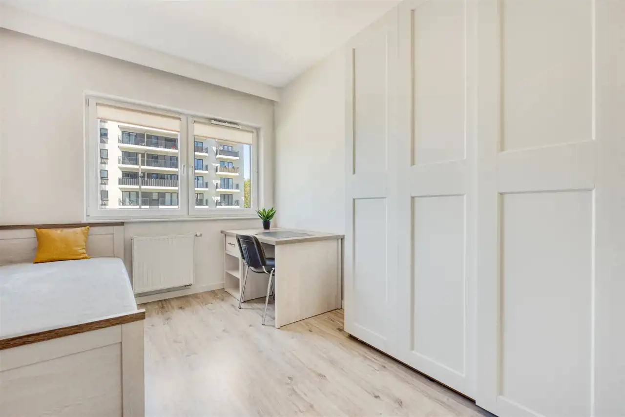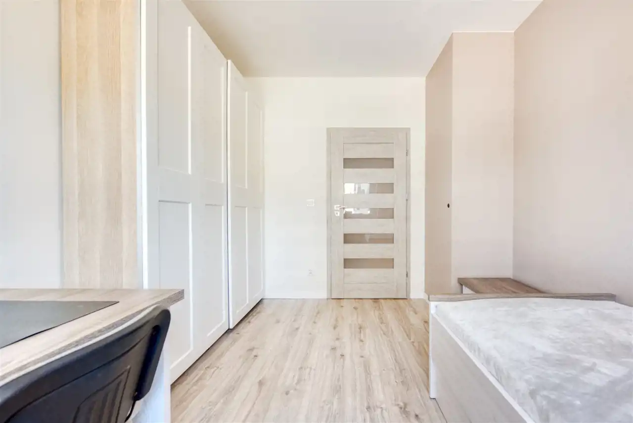 - drugi pokój mogący pełnić funkcję gabinetu lub pokoju dla dziecka (wyposażony w szafę, regał, biurko)