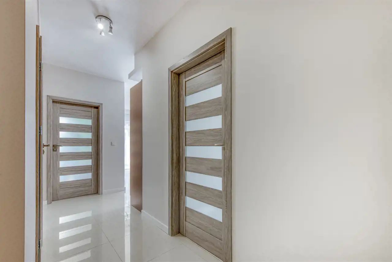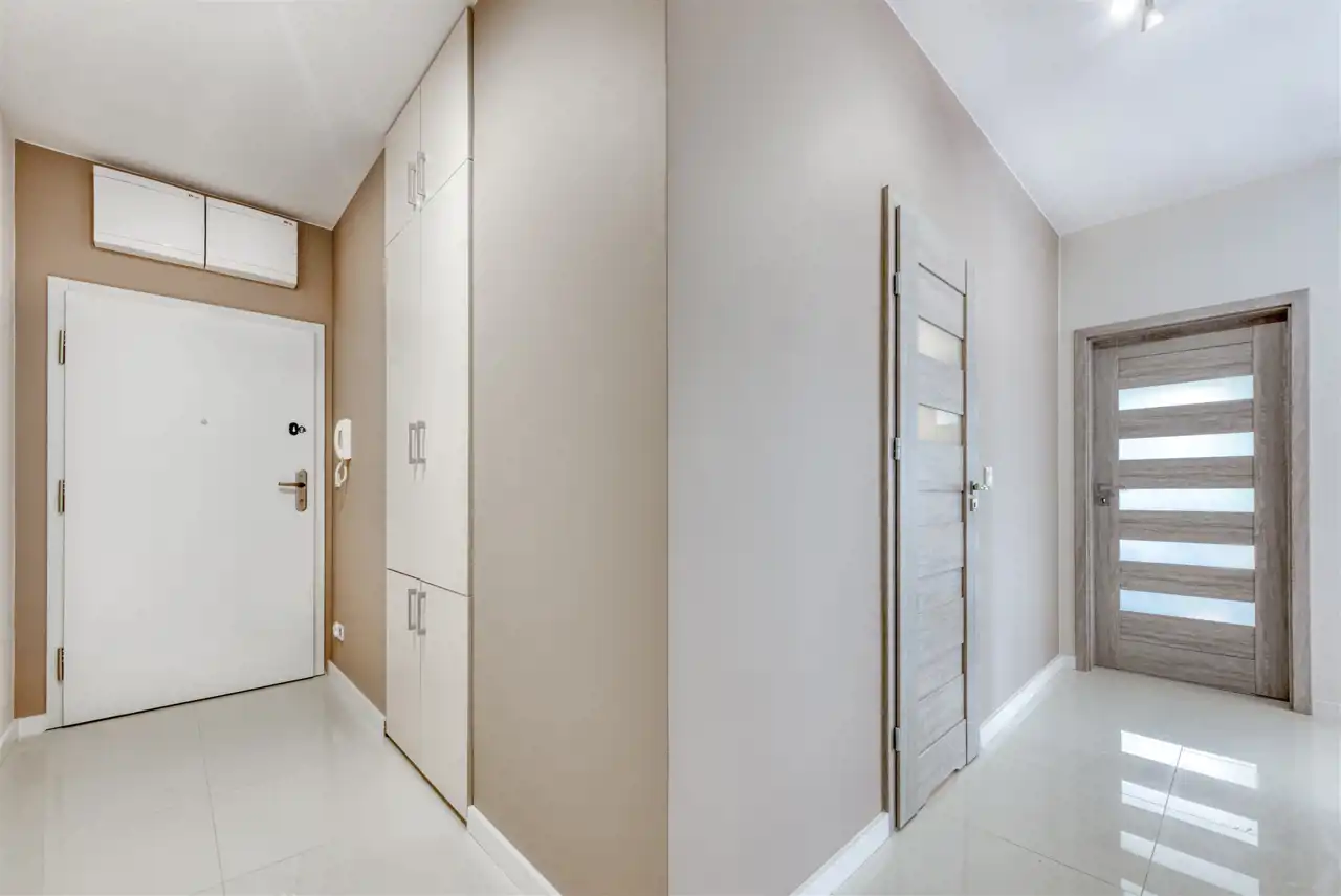 - przedpokój z zabudowanymi szafami.