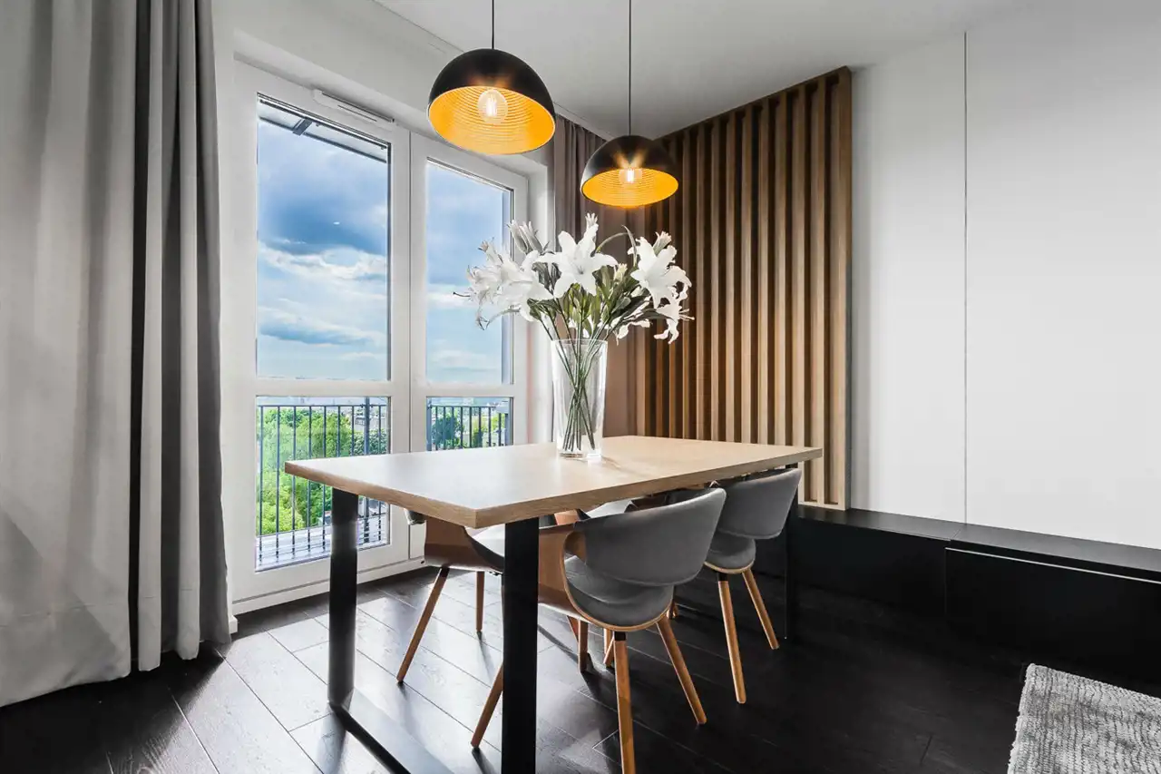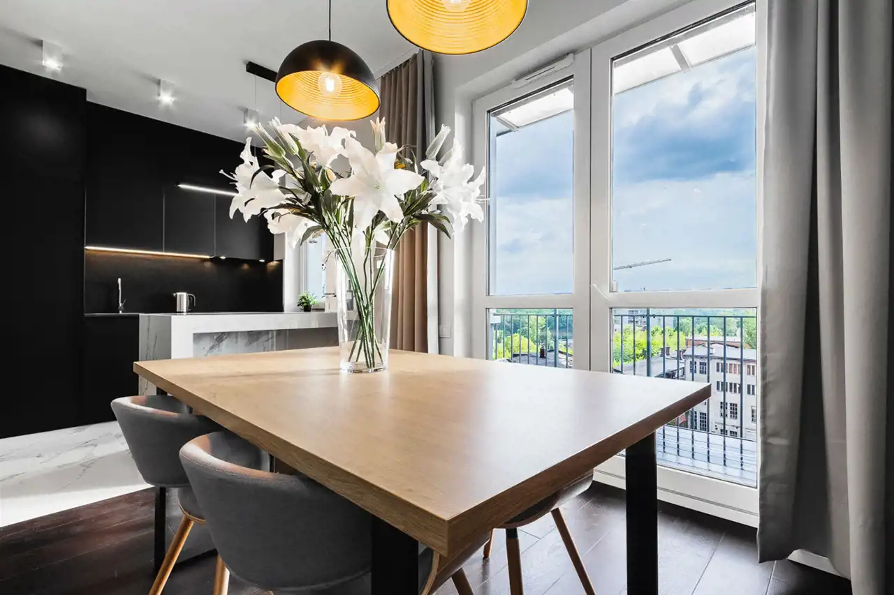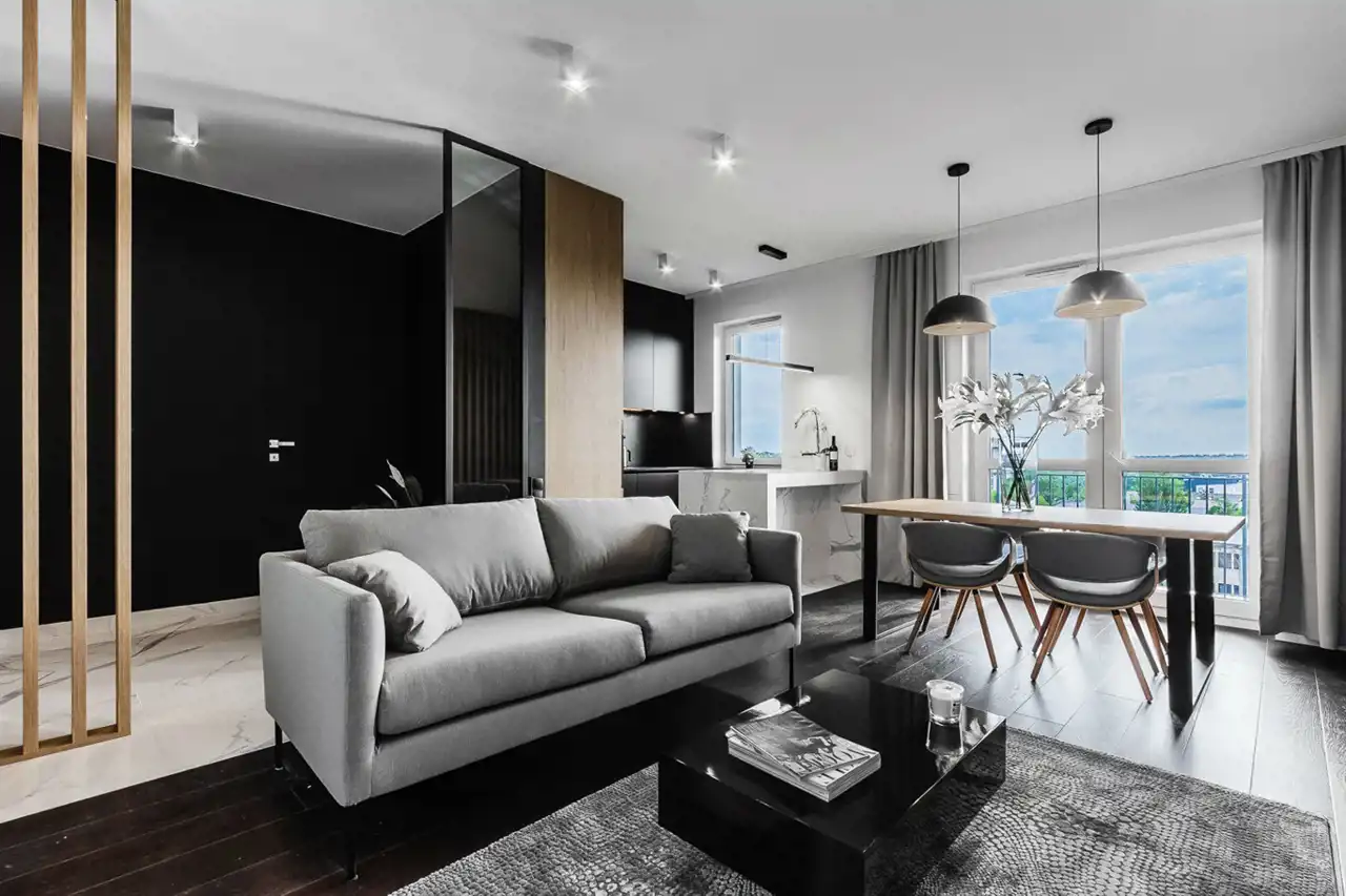 - elegancki salon z wyjściem na duży balkon;