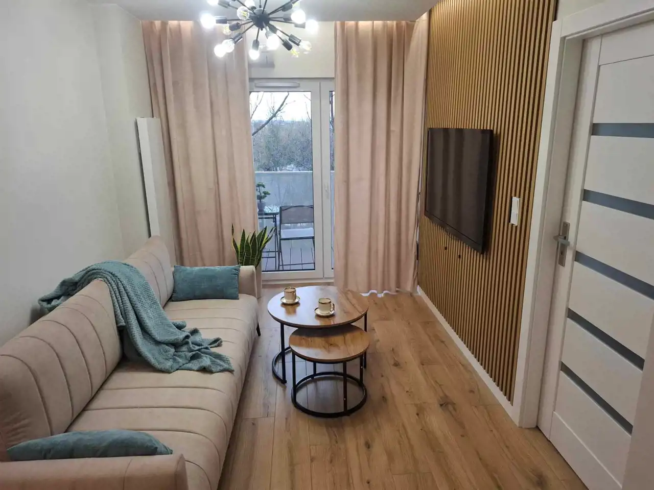 Mieszkanie komfortowe, wyposażone w sprzęt AGD (lodówkę, pralkę, zmywarkę, piekarnik, płytę indukcyjną, dwa telewizory, klimatyzację).