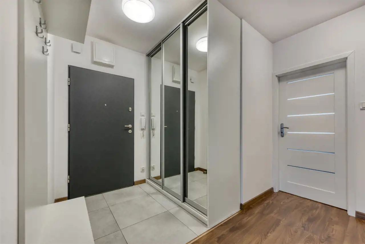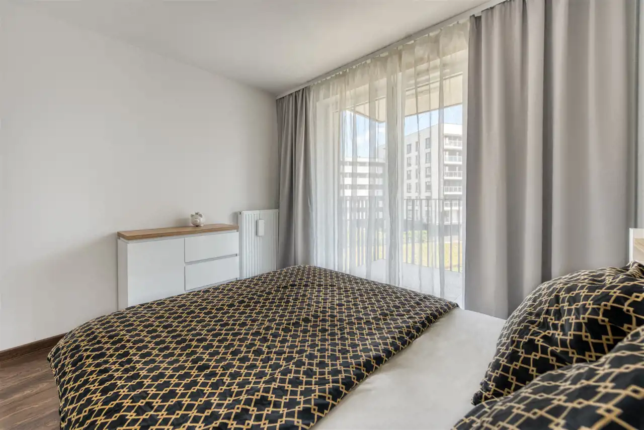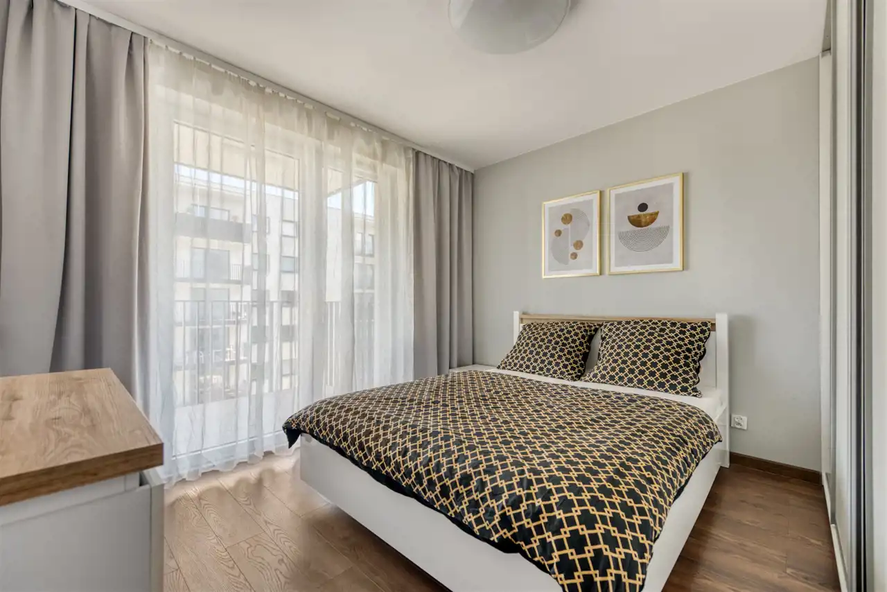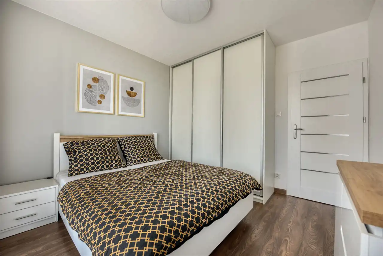 - przytulną sypialnię z dużym łóżkiem, pojemną szafą i wyjściem na drugi balkon;