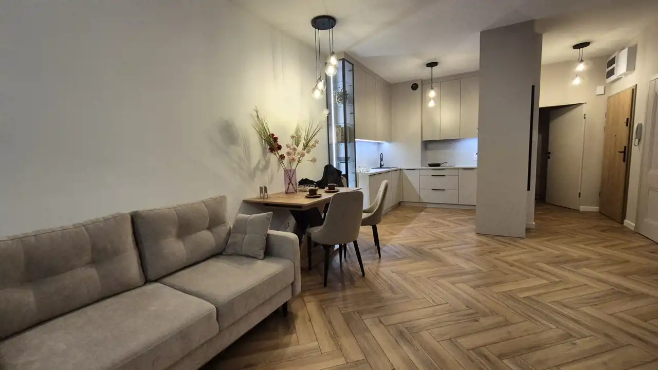 Do wynajęcia przestronny apartament o pow. ok. 45 m2, położony na trzecim piętrze NOWEGO budynku z 2024 r. do pierwszego zamieszkania. Wszystkie sprzęty oraz wyposażenie nowe. Mieszkanie klimatyzowane.