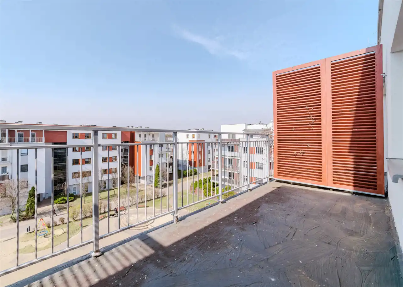 Na balkonie planowane jest ułożenie kafelków - prace przewidziane są na okolice czerwca, co podniesie komfort korzystania z przestrzeni.