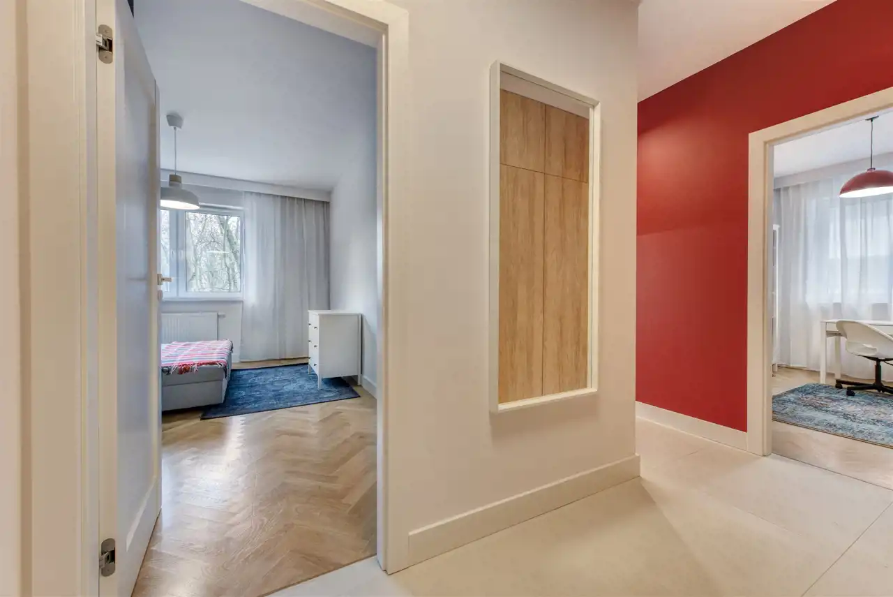 - przedpokój z zabudowaną szafą.