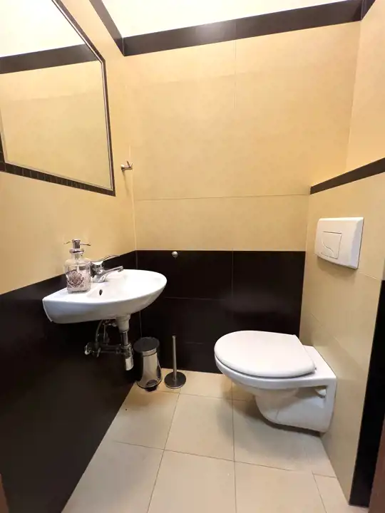 - OSOBNE WC: 1,2 m2, sedes podwieszany, umywalka z lustrem,