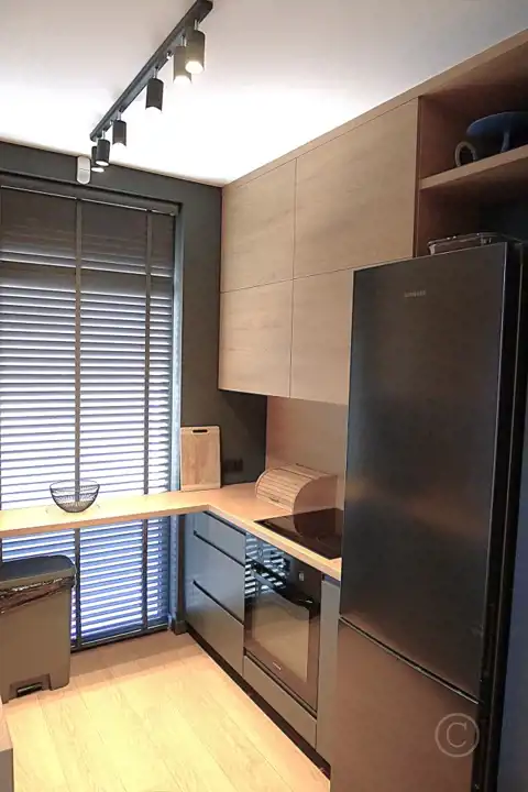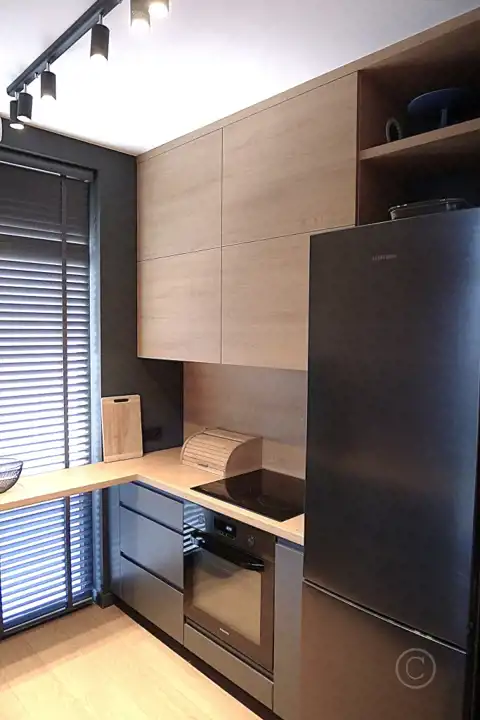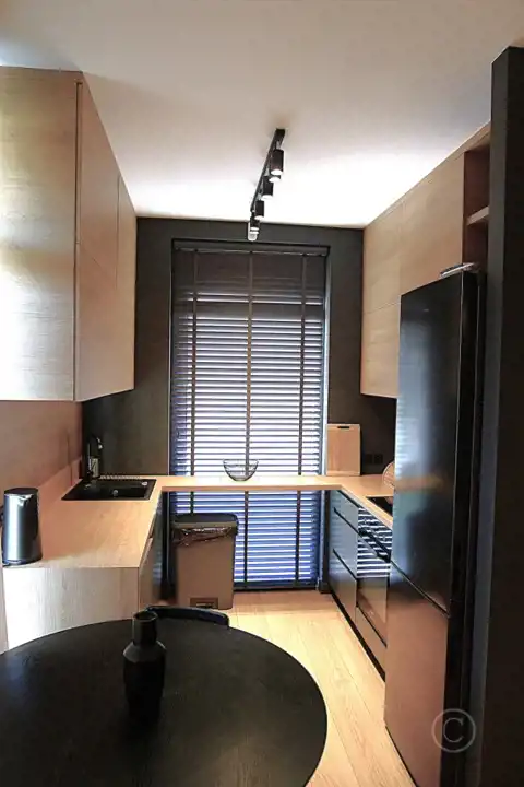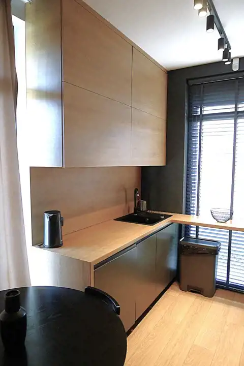 - nowoczesna zabudowa kuchenna wraz ze sprzętem AGD