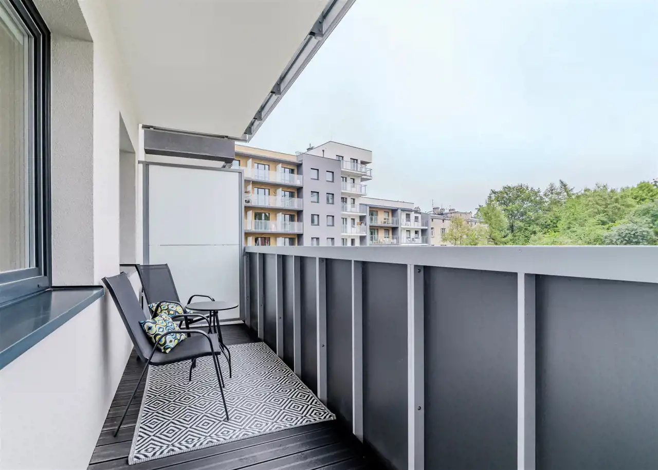 Nowoczeny, funkcjonalny i klimatyzowany trzypokojowy apartament o powierzchni 54,84 m2 położony na pierwszym piętrze apartamentowca przy ul. Źródłowej 9 w Łodzi.