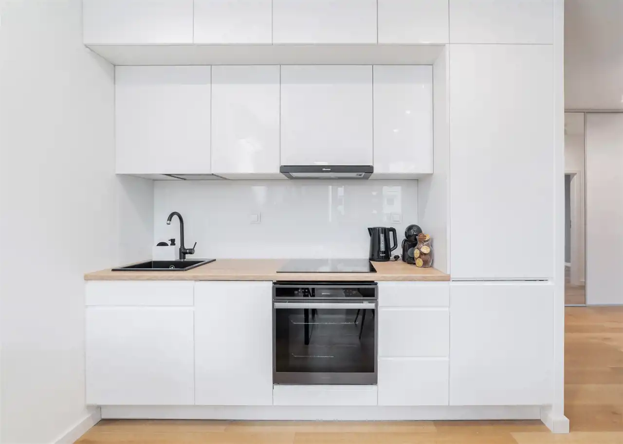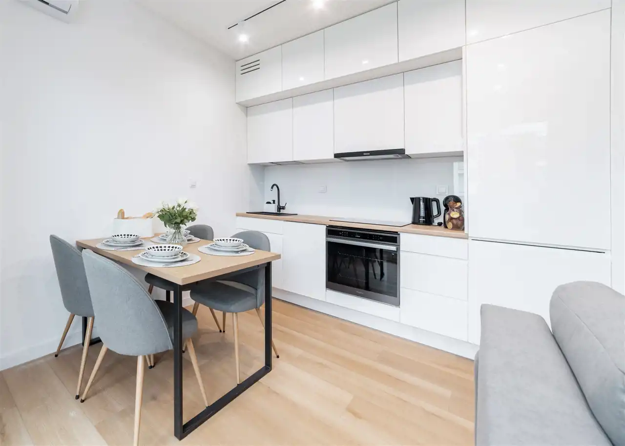 - funkcjonalny aneks kuchenny wyposażony w lodówkę z zamrażarką, piekarnik, płytę indukcyjną, okap oraz zmywarkę;