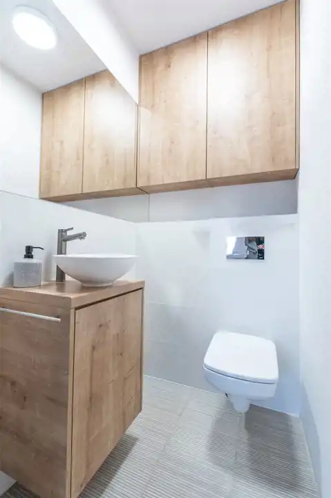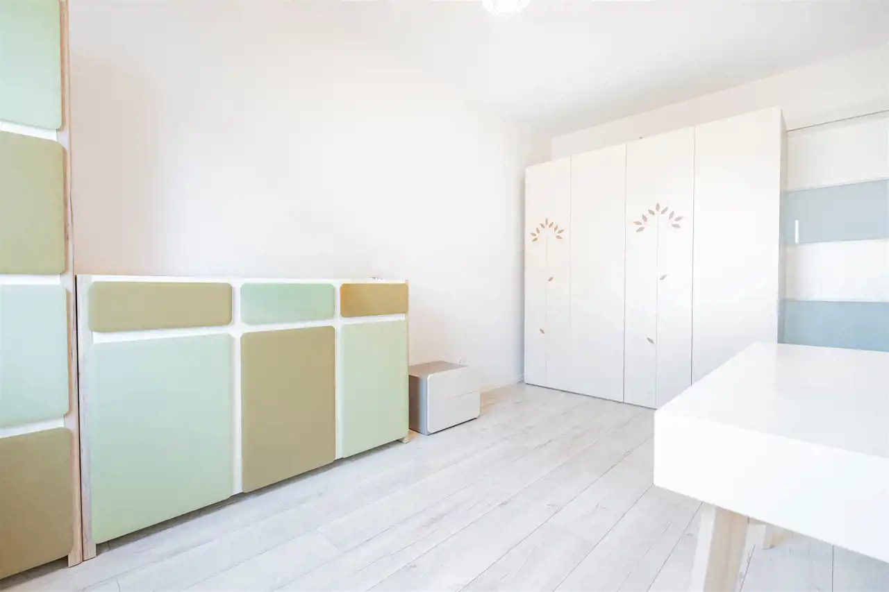 W salonie kanapa z funkcją spania, stolik, stół z krzesłami, szafka RTV oraz TV. Dodatkowo wyjście na duży balkon z widokiem na zieleń. Przy salonie aneks kuchenny, wyposażony w we wszystkie niezbędne sprzęty i meble. Wszystkie sprzęty (lodówka z zamrażarką, piekarnik, płyta indukcyjna, zmywarka) w bardzo dobrym stanie. Salon bardzo przestronny i dobrze nasłoneczniony. Sypialnia główna wyposażona w podwójne łóżka oraz szafę i komody. W drugiej sypialni znajdziemy rozkładaną kanapę oraz szafę. Łazienka przestronna, wyposażona w kabinę prysznicową z deszczownicą. Dodatkowo ogromne lustro, WC, umywalka i pralka. Łazienka urządzona w stylu komponującym się z resztą mieszkania. Dodatkowo oddzielne WC z umywalką. W przedpokoju funkcjonalna, duża szafa.