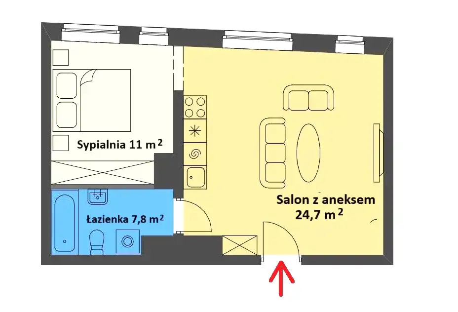 - Charakterystyka mieszkania 42.33 m2, 2 pokoje