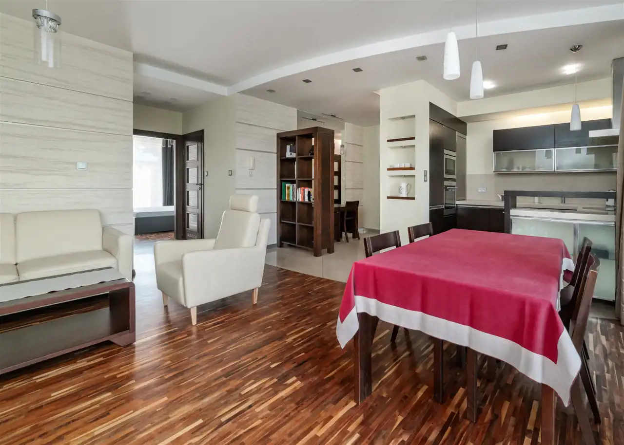 Przytulna aranżacja wnętrz, funkcjonalny układ apartamentu oraz doskonała lokalizacja stanowią niewątpliwe atuty oferty.