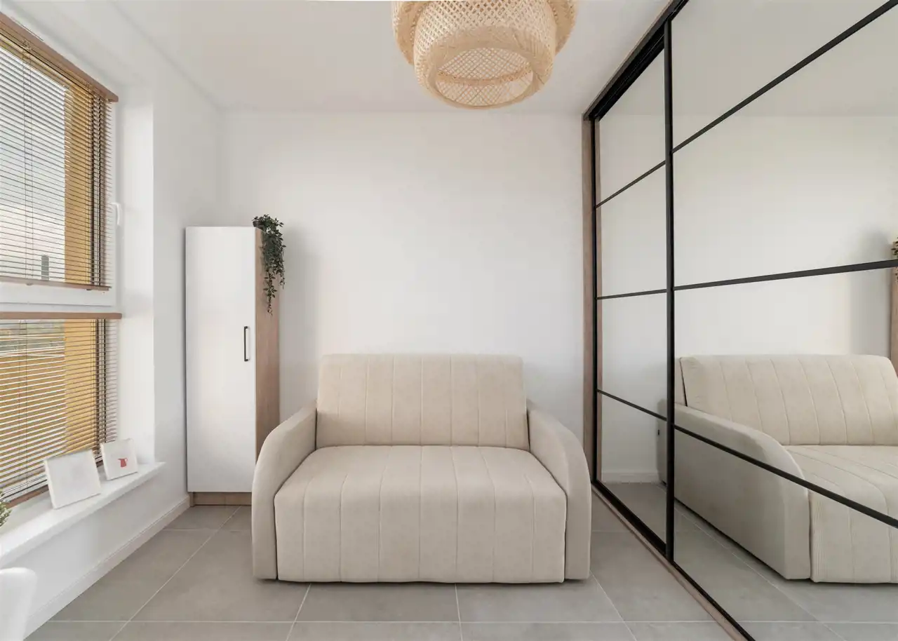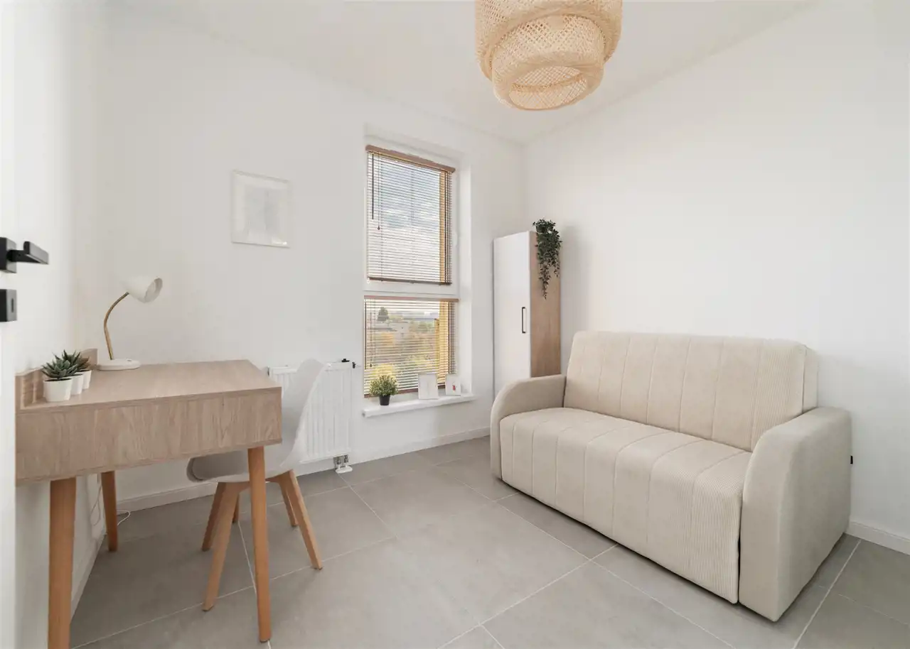 - kolejny pokój wyposażony w biurko i krzesło oraz rozkładaną sofę;