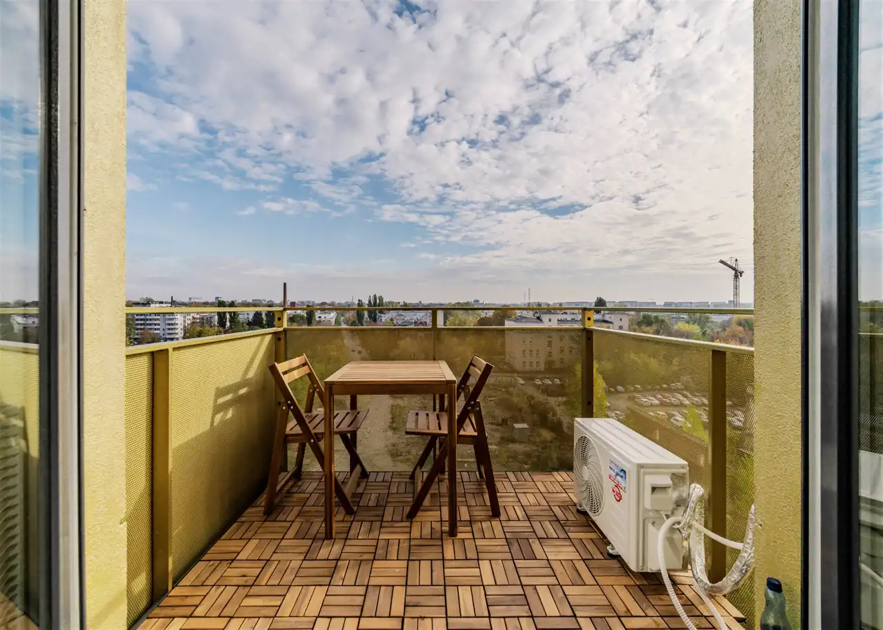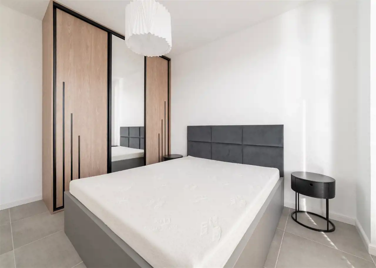 - komfortową, klimatyzowaną sypialnię z wygodnym łóżkiem i pojemną szafą oraz wyjściem na drugi balkon;