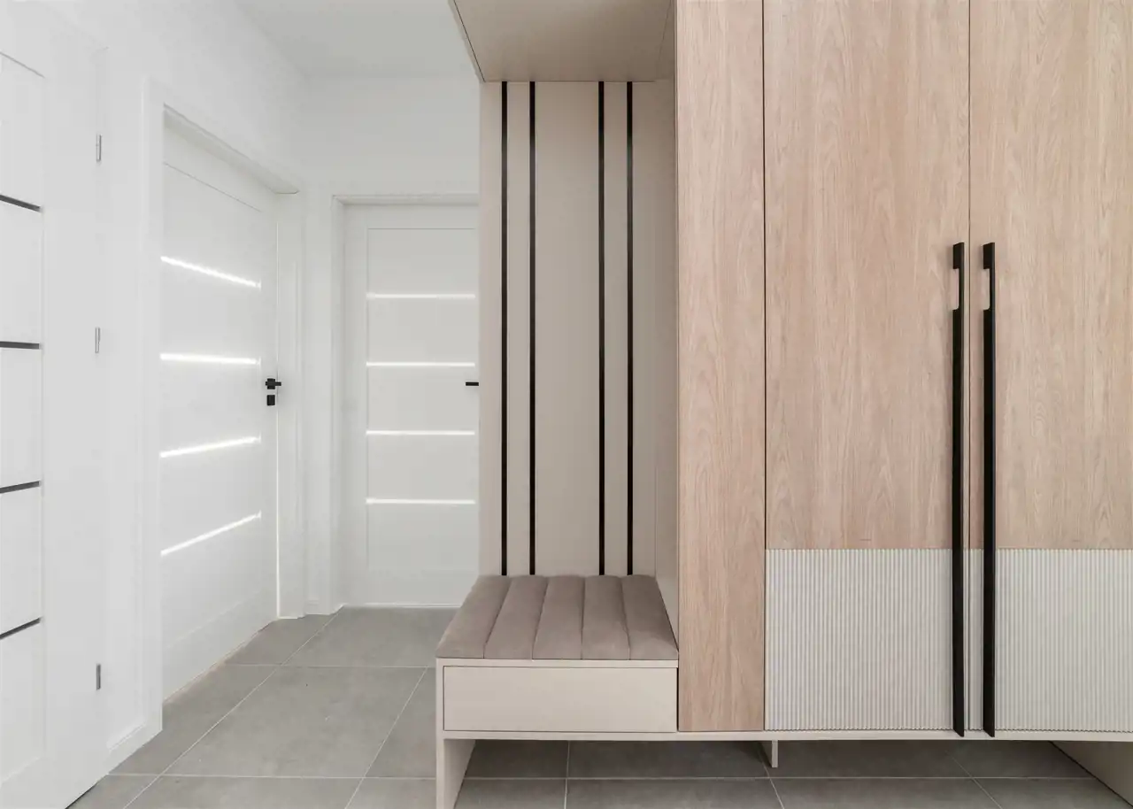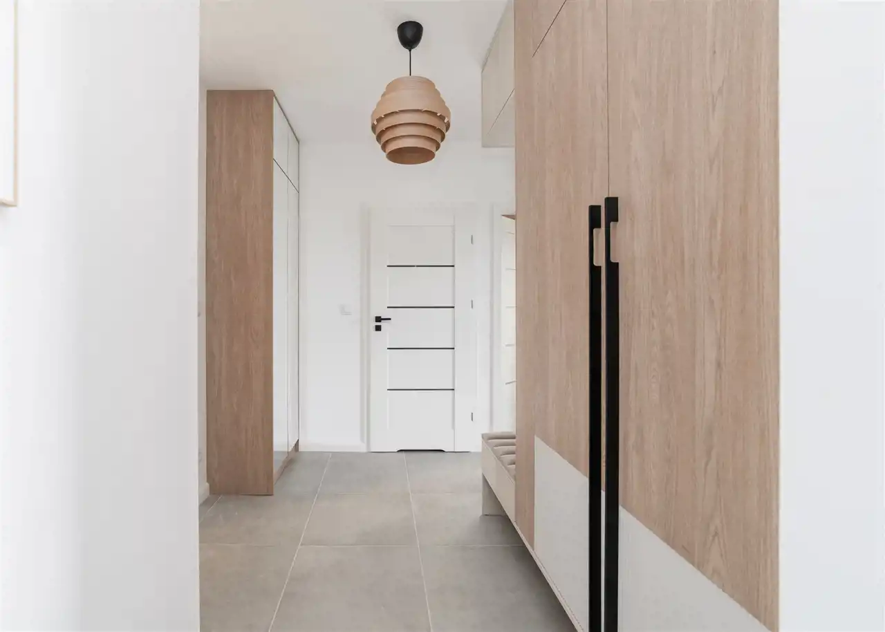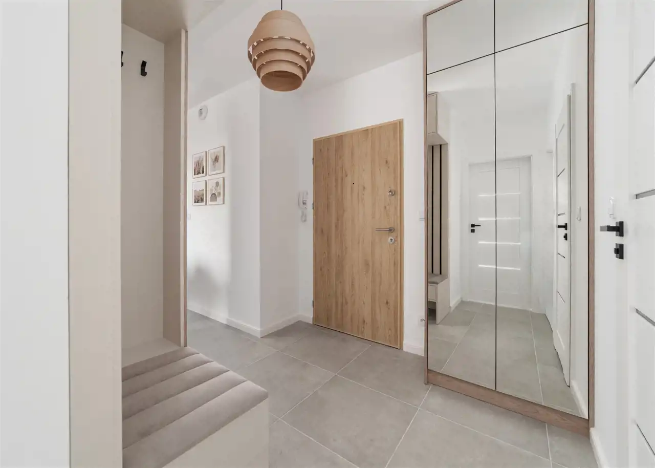 - przedpokój z zabudowanymi szafami.