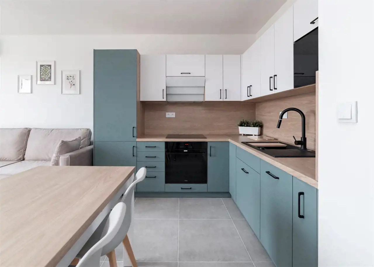 - aneks kuchenny (wyposażony w zmywarkę, płytę indukcyjną, okap, piekarnik, mikrofalę oraz lodówko-zamrażarkę);