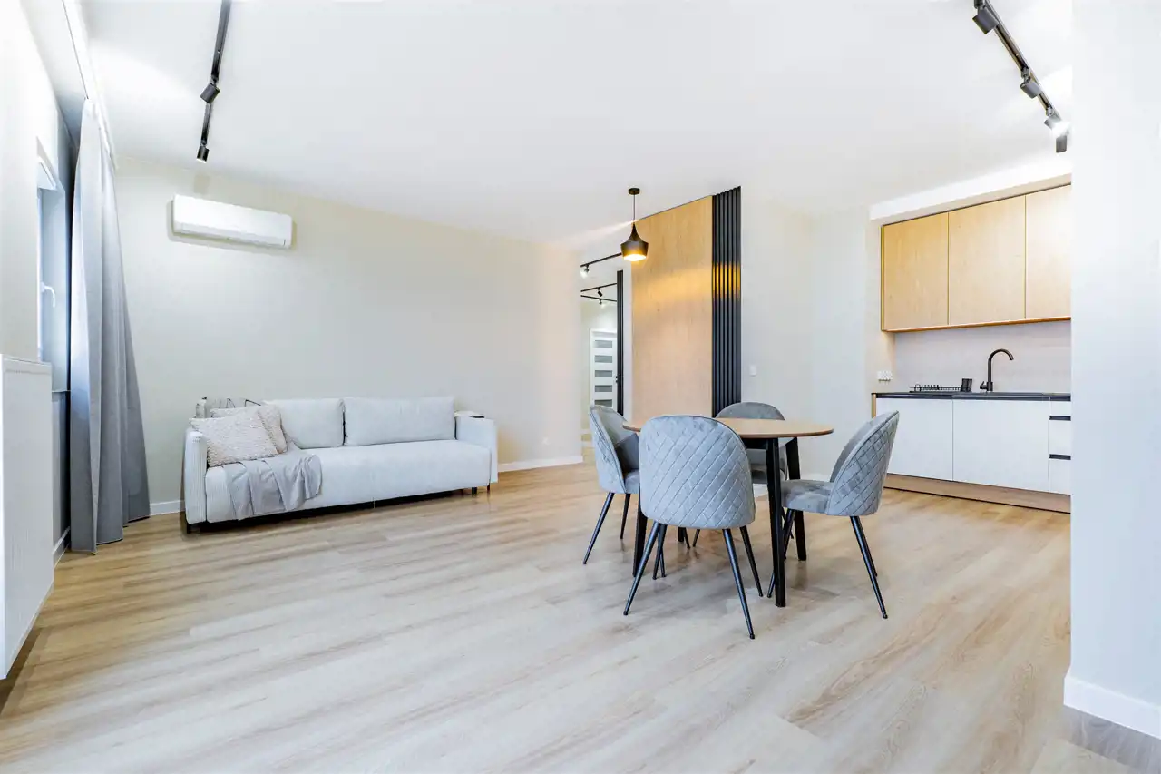 Apartament składa się z 4 pokoi: salonu z aneksem kuchennym, 2 sypialni, gabinetu, łazienki, WC oraz przedpokoju. Mieszkanie do pierwszego zamieszkania. Wszystkie sprzęty oraz wyposażenie nowe. Mieszkanie klimatyzowane. Atutem mieszkania jest duża przestrzeń do przechowywania oraz bliskość terenów zielonych. Całość wykończona bardzo gustownie przy użyciu materiałów wysokiej jakości. Mieszkanie klimatyzowane.