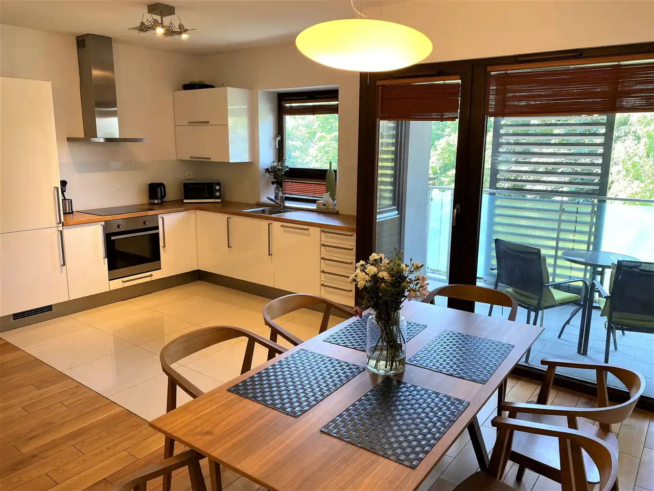 - LOGGIA: 14,54 m², wyłożona terakotą, od strony zachodniej z widokiem na zieleń, zamontowane przesuwne żaluzje przeciwsłoneczne, zestaw mebli ogrodowych,