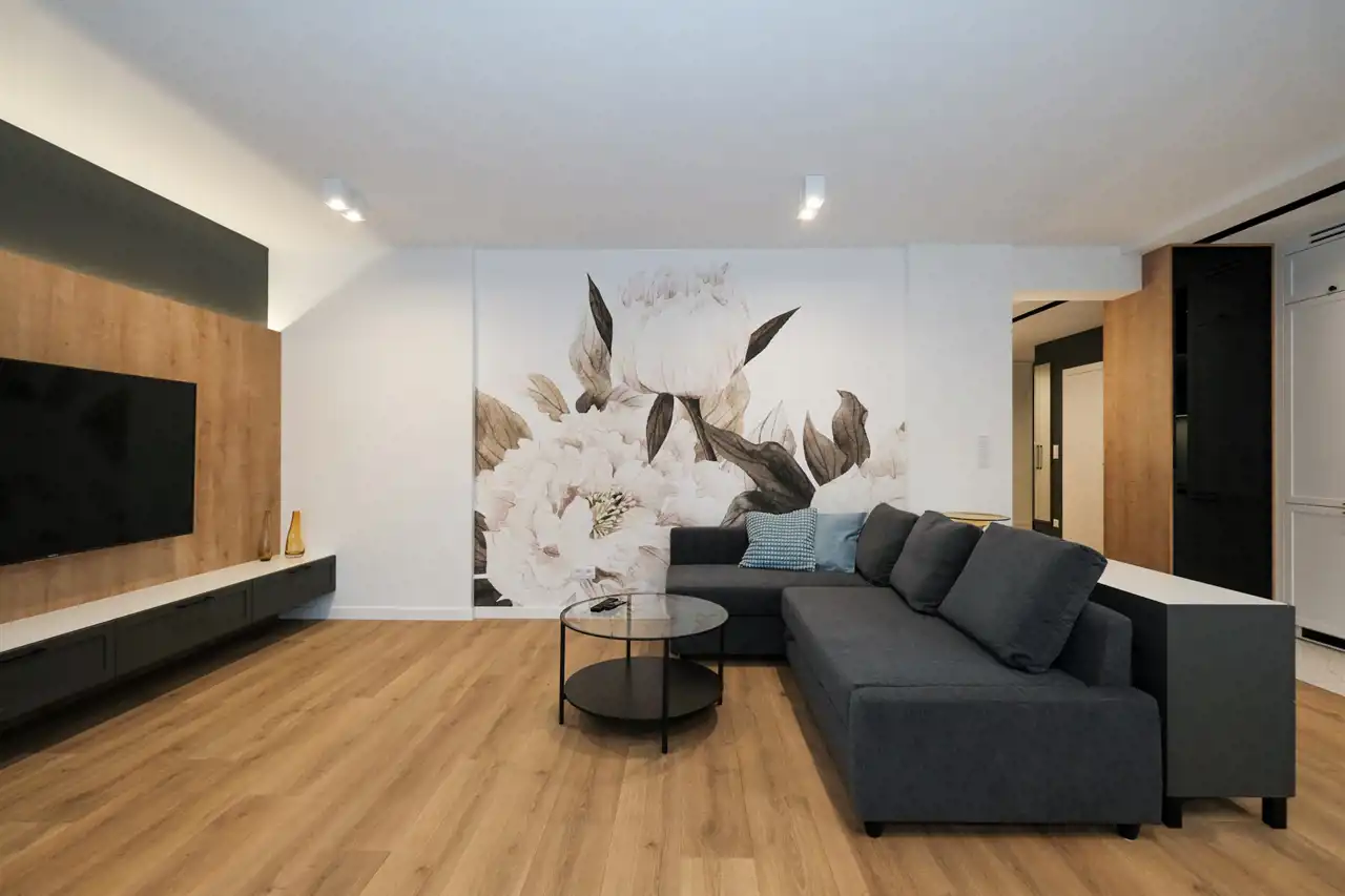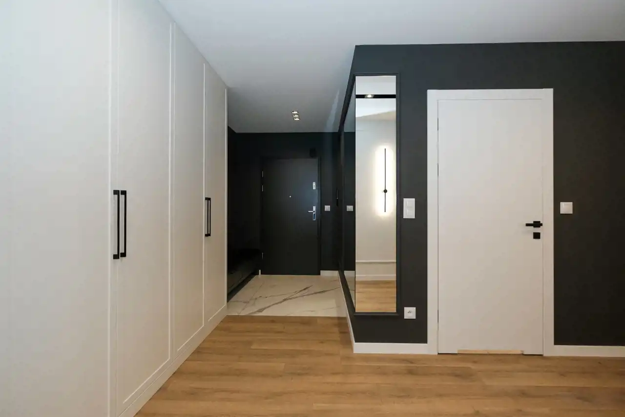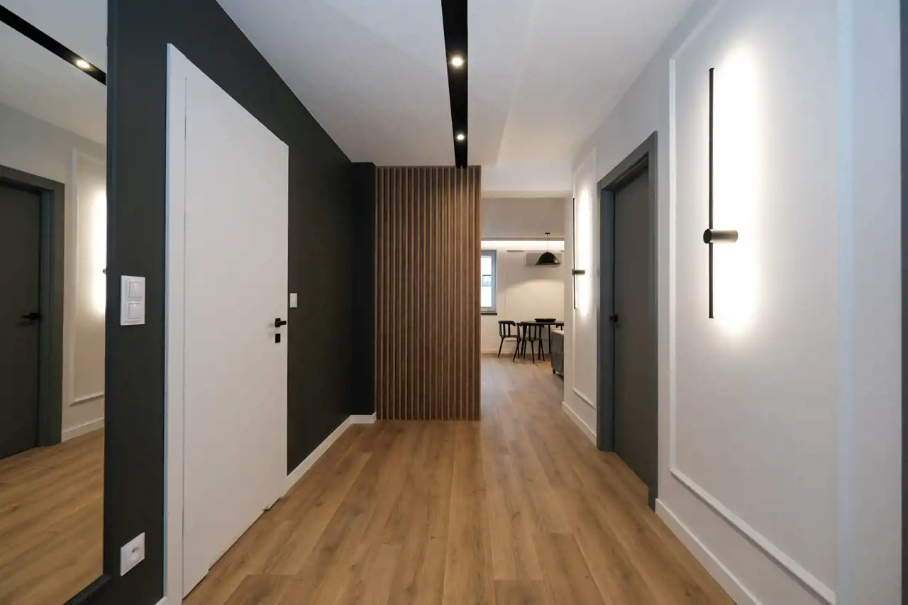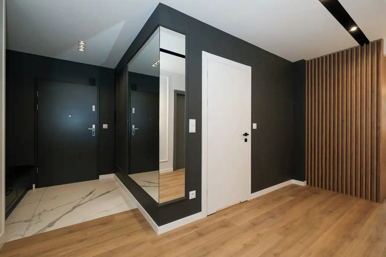 Mieszkanie wykończone wysokiej jakości materiałami, posiada liczne punkty świetlne, które tworzą niepowtarzalny klimat i nastrój.