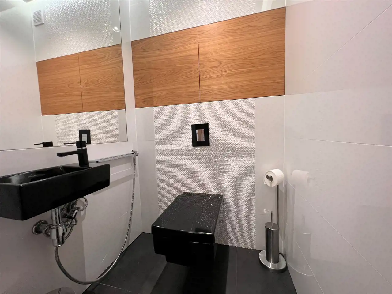 - WC: 1,88 m2, sedes podwieszany, umywalka z lustrem,