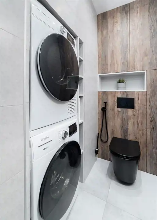 - przestronną sypialnię z podwójnym łóżkiem z szafą w zabudowie z osobnym WC, z pralką i suszarką;