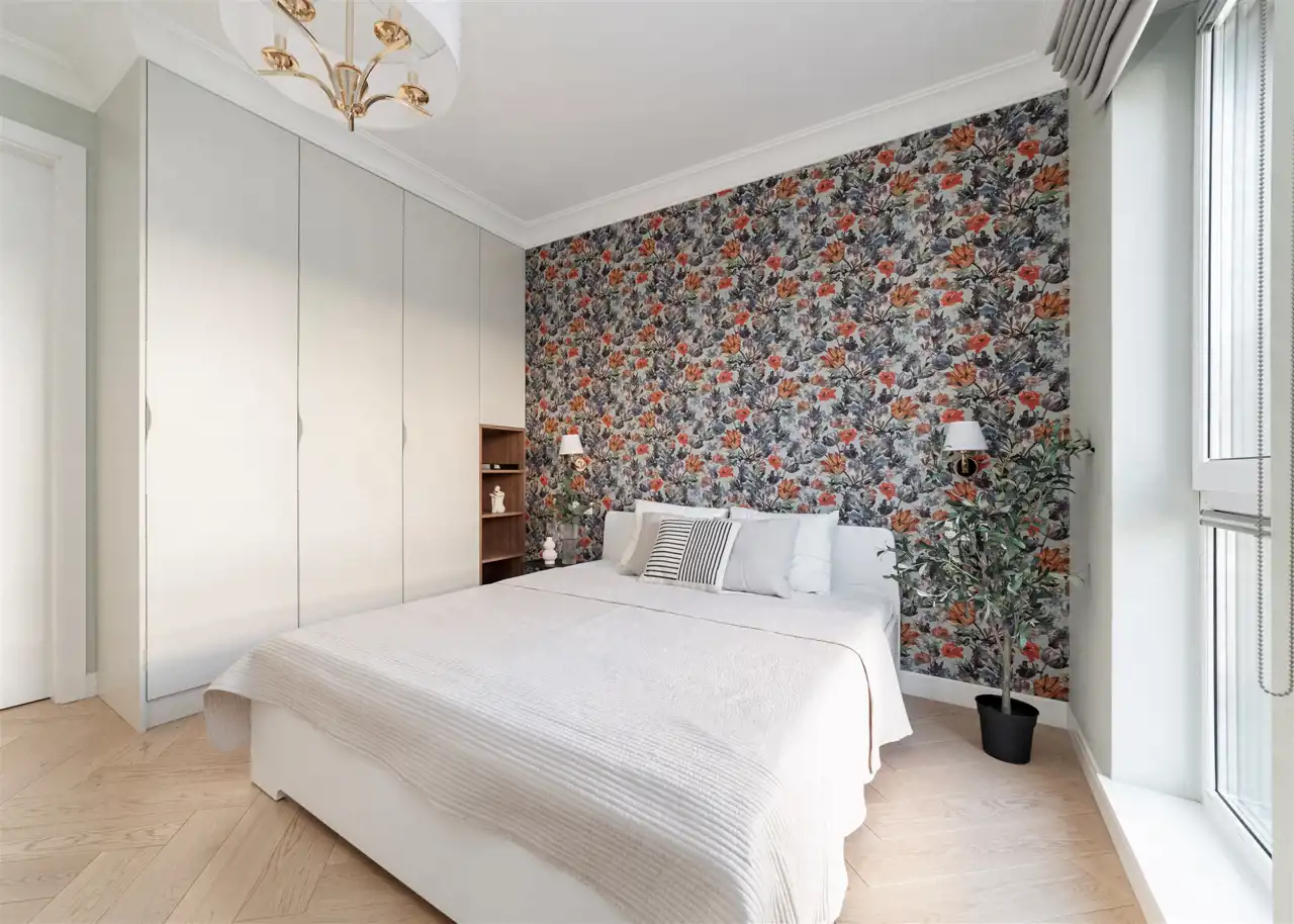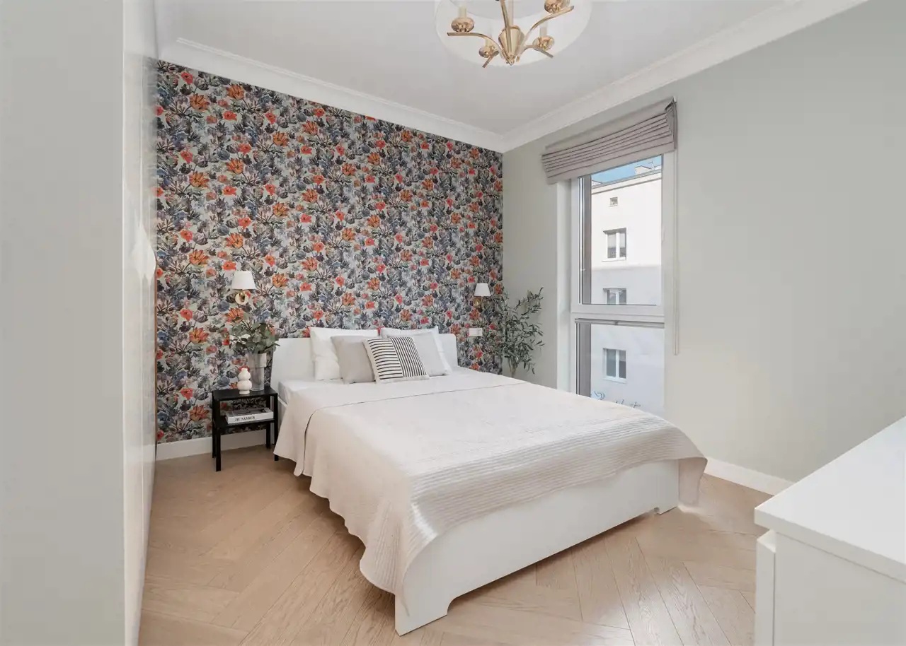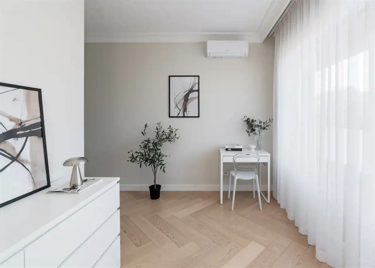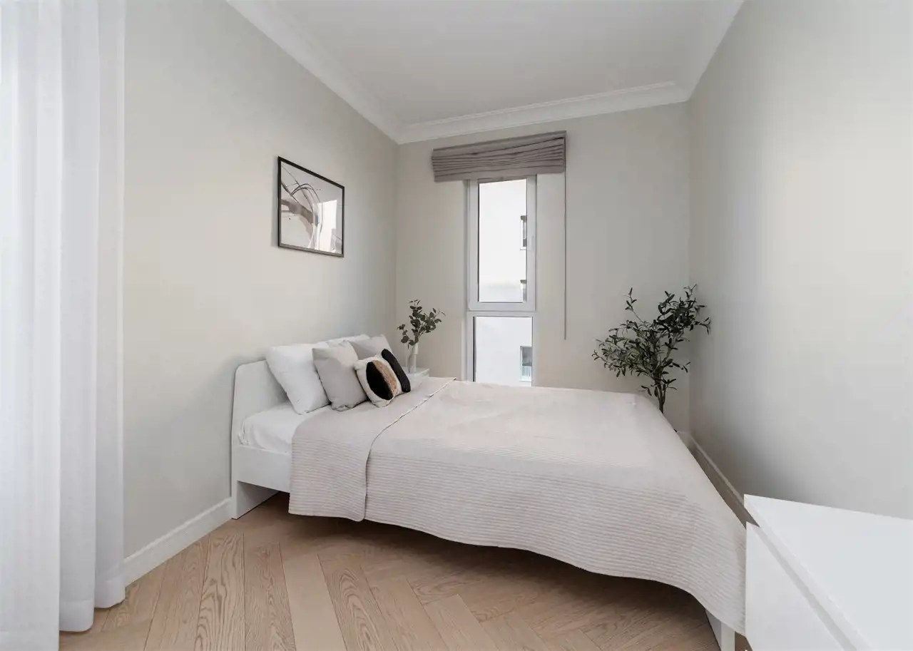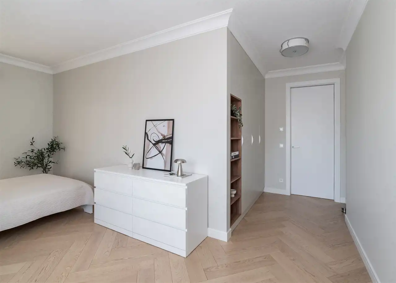 - drugą sypialnię z podwójnym łóżkiem, biurkiem, komodą oraz szafą w zabudowie;