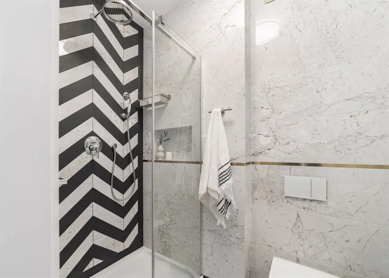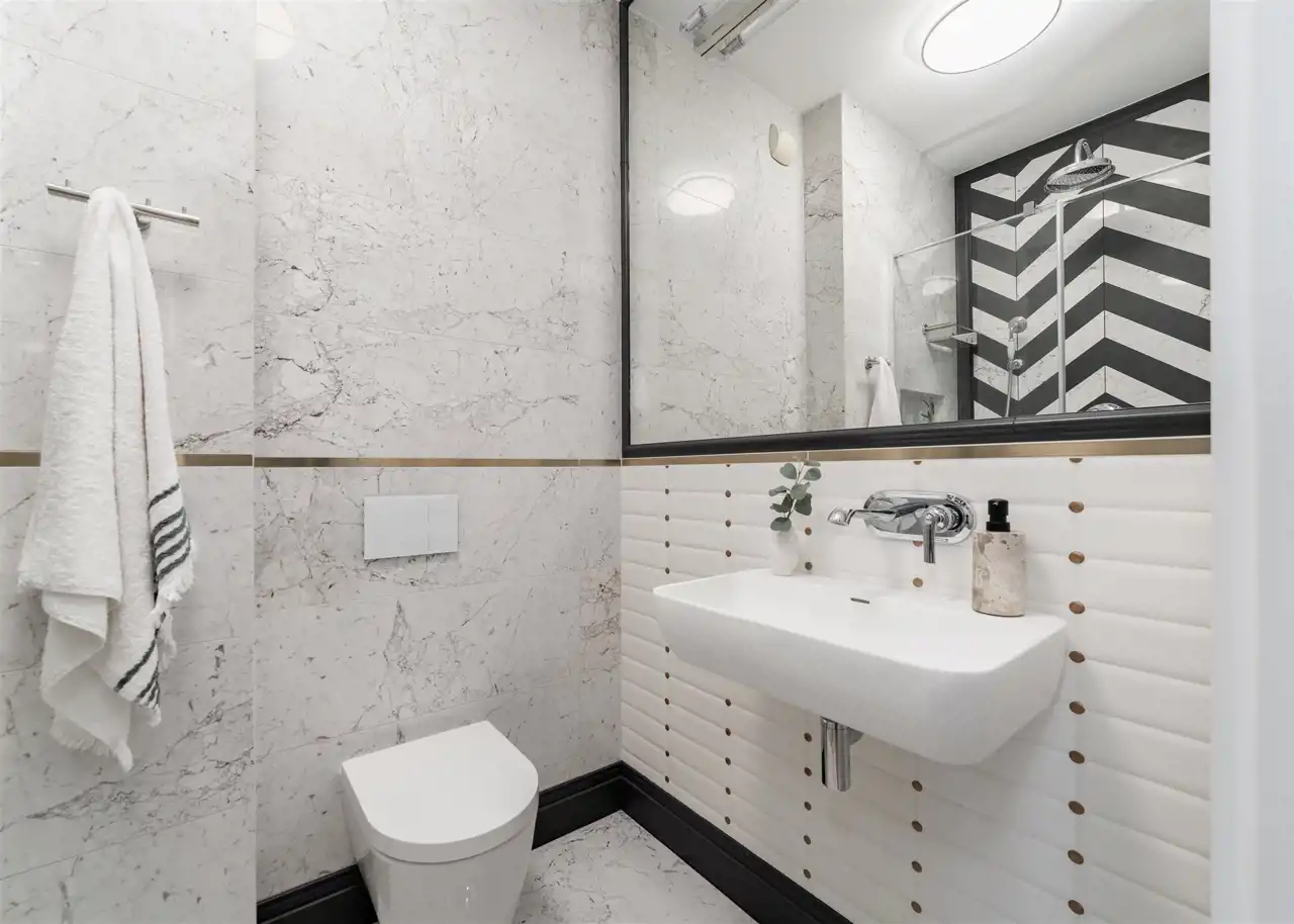 - drugą łazienkę z WC wyposażoną w dużą kabinę prysznicową;