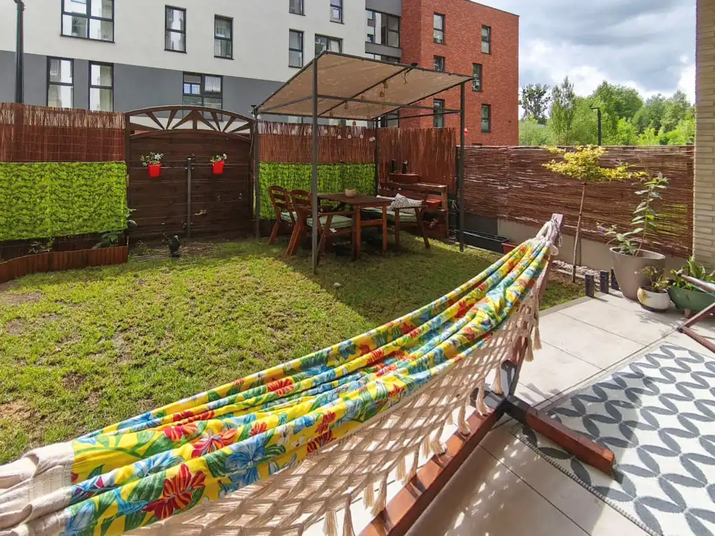 - pokój dzienny z rozkładaną sofą oraz stołem i krzesłami, z wyjściem na duży ogródek;