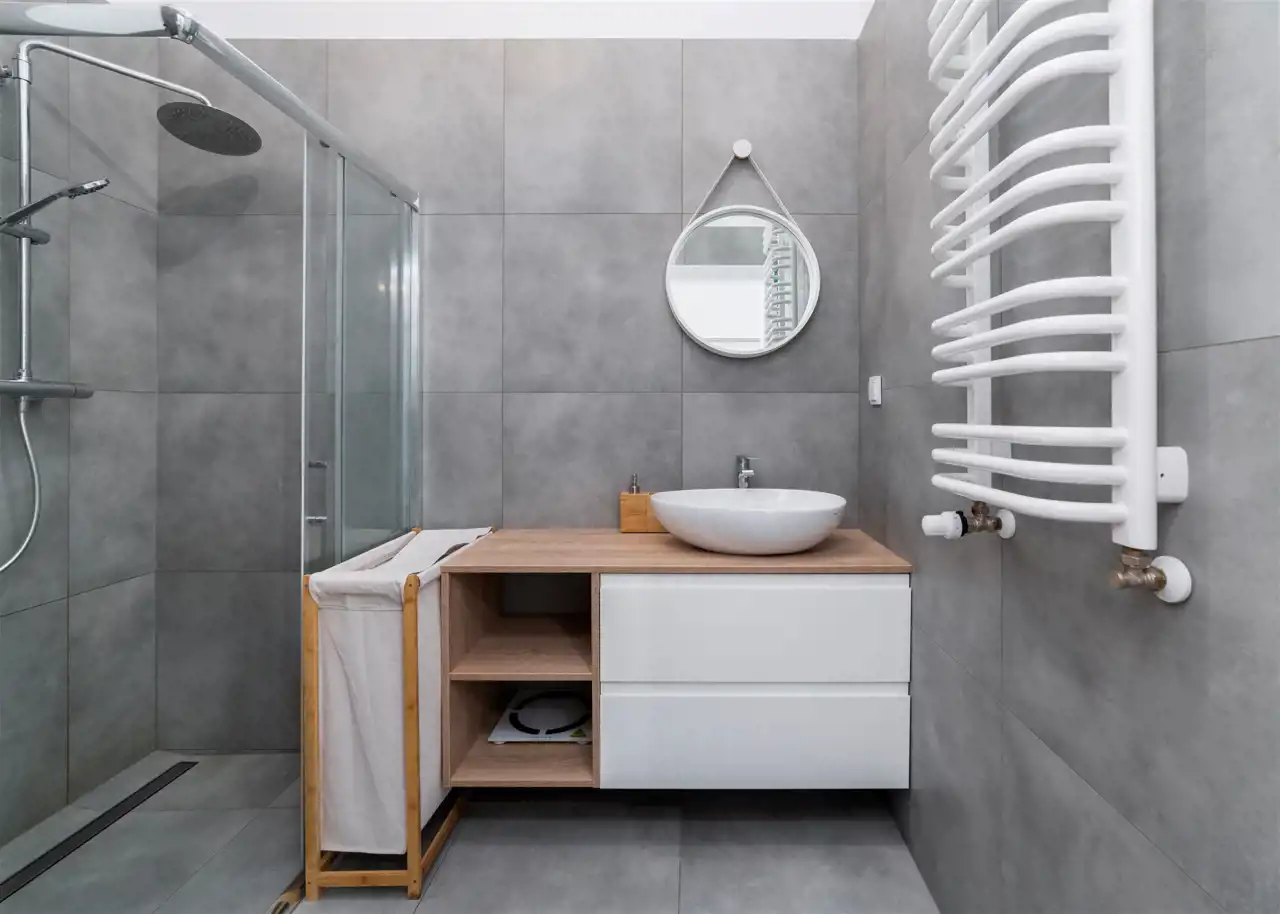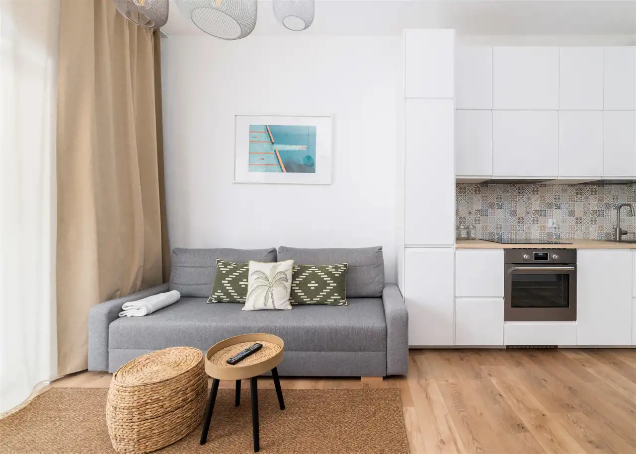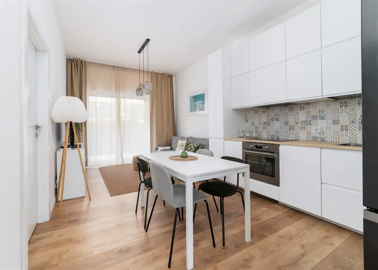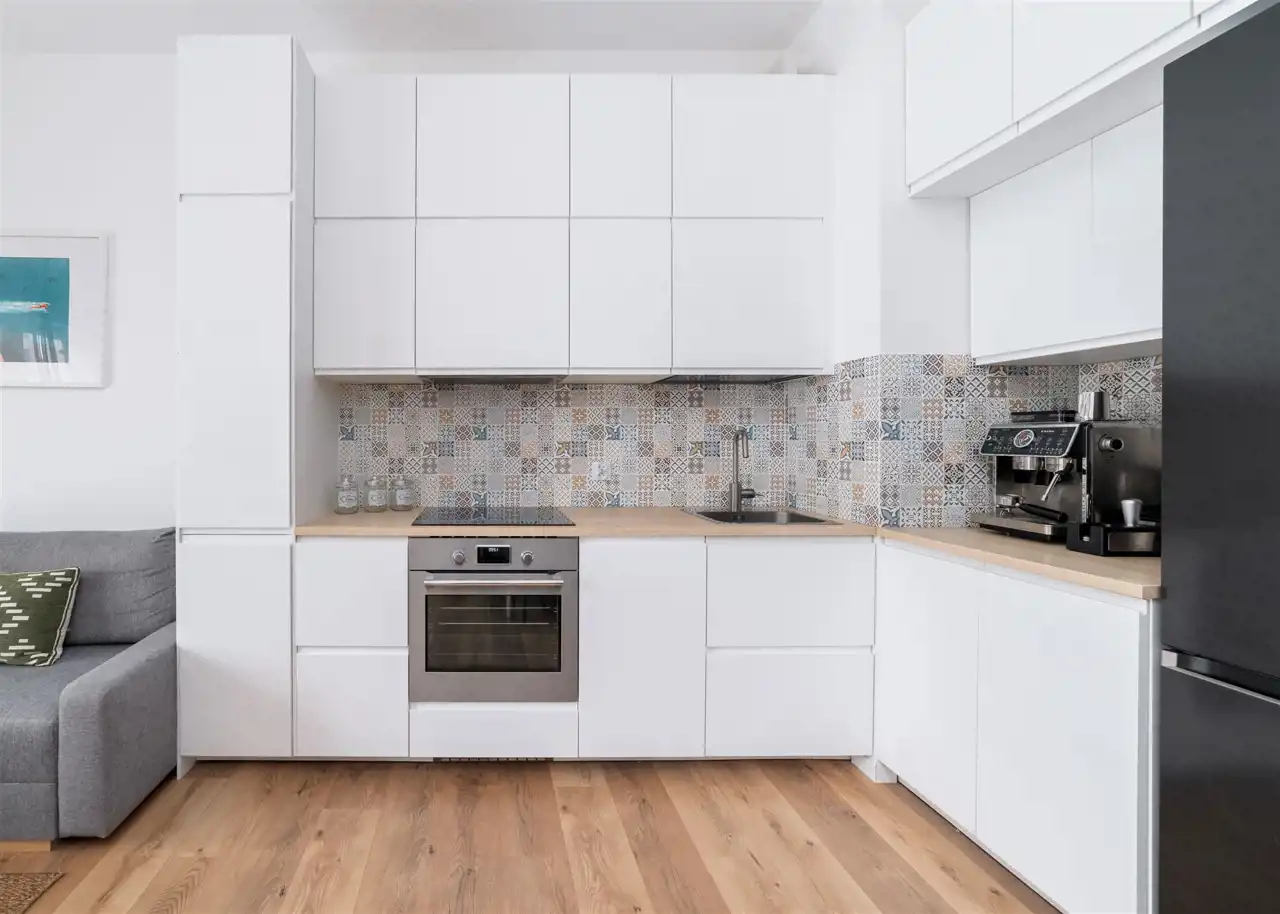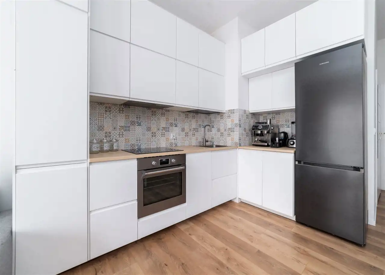 - aneks kuchenny wyposażony w płytę indukcyjną, piekarnik, zmywarkę i lodówko-zamrażarkę oraz pralkę;