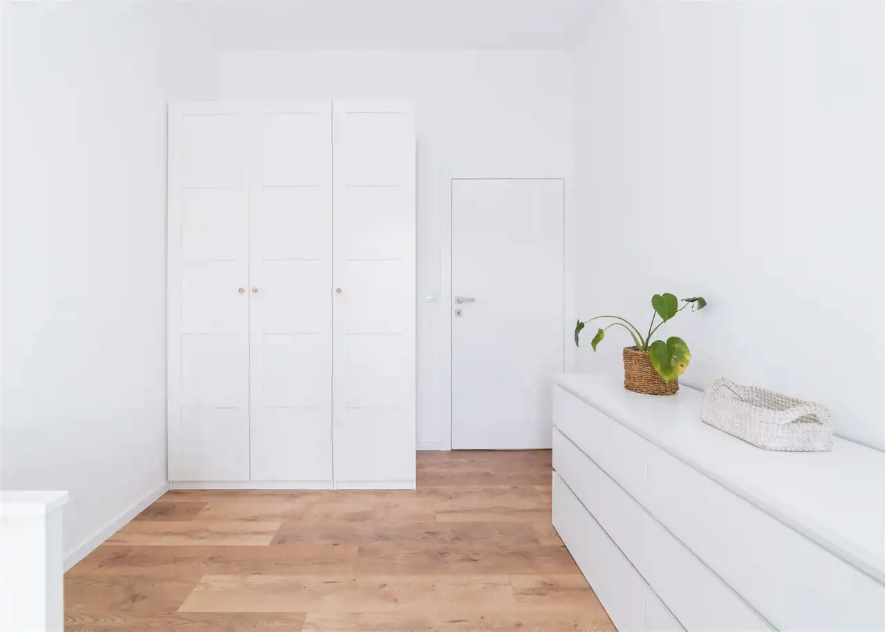 - sypialnię z podwójnym łóżkiem i szafą z wyjściem na drugi ogródek;