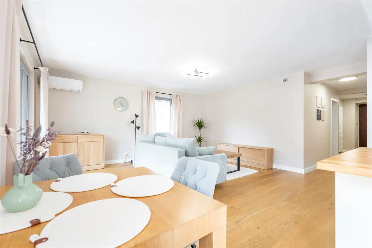 Ten apartament na 1. piętrze w nowoczesnym budynku z windą oferuje najwyższy standard i bezpieczeństwo. Osiedle jest zamknięte, monitorowane i chronione przez fizyczną ochronę, co zapewnia spokój i prywatność.
