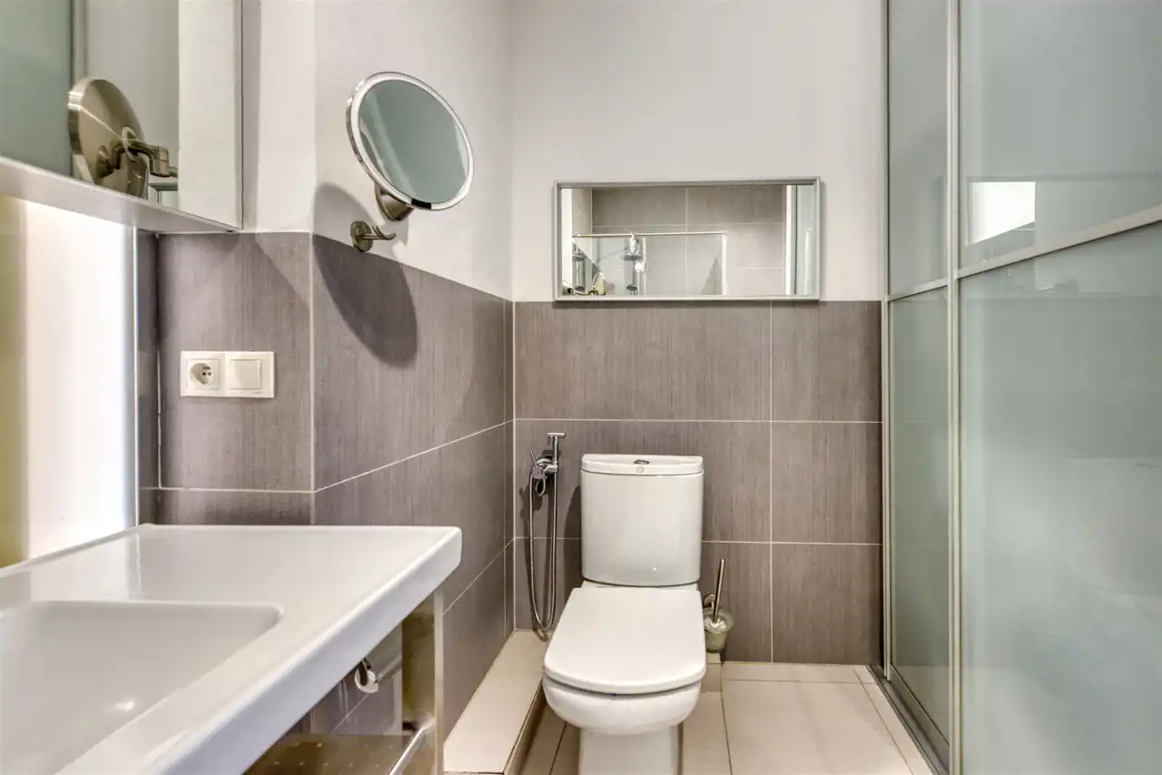 Apartament składa się z przestronnego, klimatyzowanego salonu z przepięknym widokiem na Park Helenów, aneksu kuchennego wyposażonego w sprzęt AGD(okap, piekarnik, płyta elektryczna, lodówka z zamrażarką, zmywarkę), dwóch sypialni wyposażonych w łóżko, stoliki nocne oraz szafę, łazienki wyposażonej w prysznic, pralkę, garderoby oraz przedpokoju z szafą.