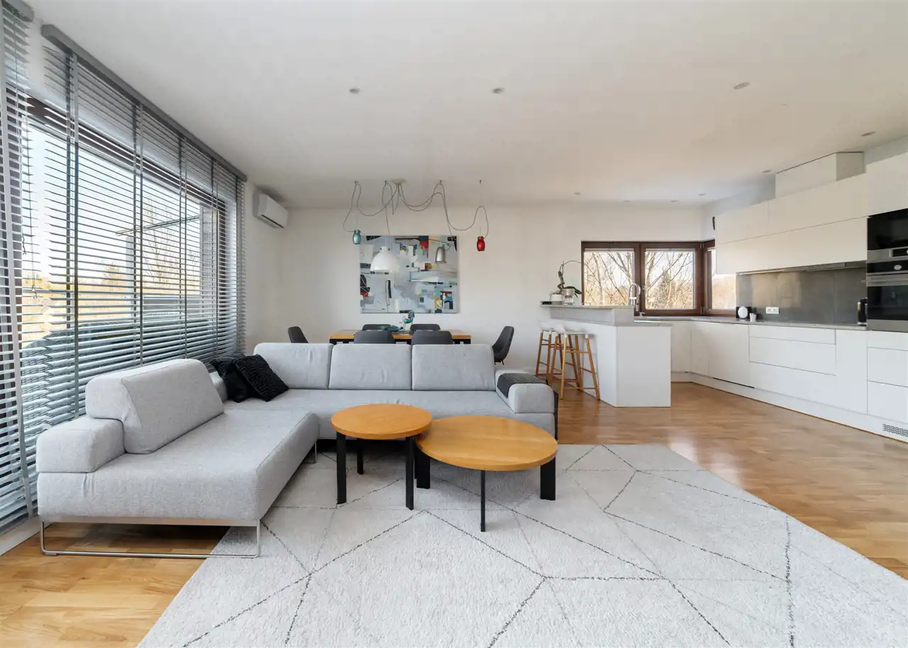 Mamy przyjemność zaprezentować Państwu nowoczesny, pięknie urządzony apartament 4-pokojowy o powierzchni 105,77 m2 z dwoma tarasami usytuowany na ostatnim, drugim piętrze w kameralnym, 10-mieszkaniowym budynku w prestiżowej lokalizacji Marysin-Rogi przy ul. Klimatycznej 34 - to jedna z nielicznych części Łodzi, gdzie rano słychać ptaki, a nie tramwaje, mimo że do centrum (Plac Wolności/Manufaktura) jedzie się stąd zaledwie 12-15 minut autem.