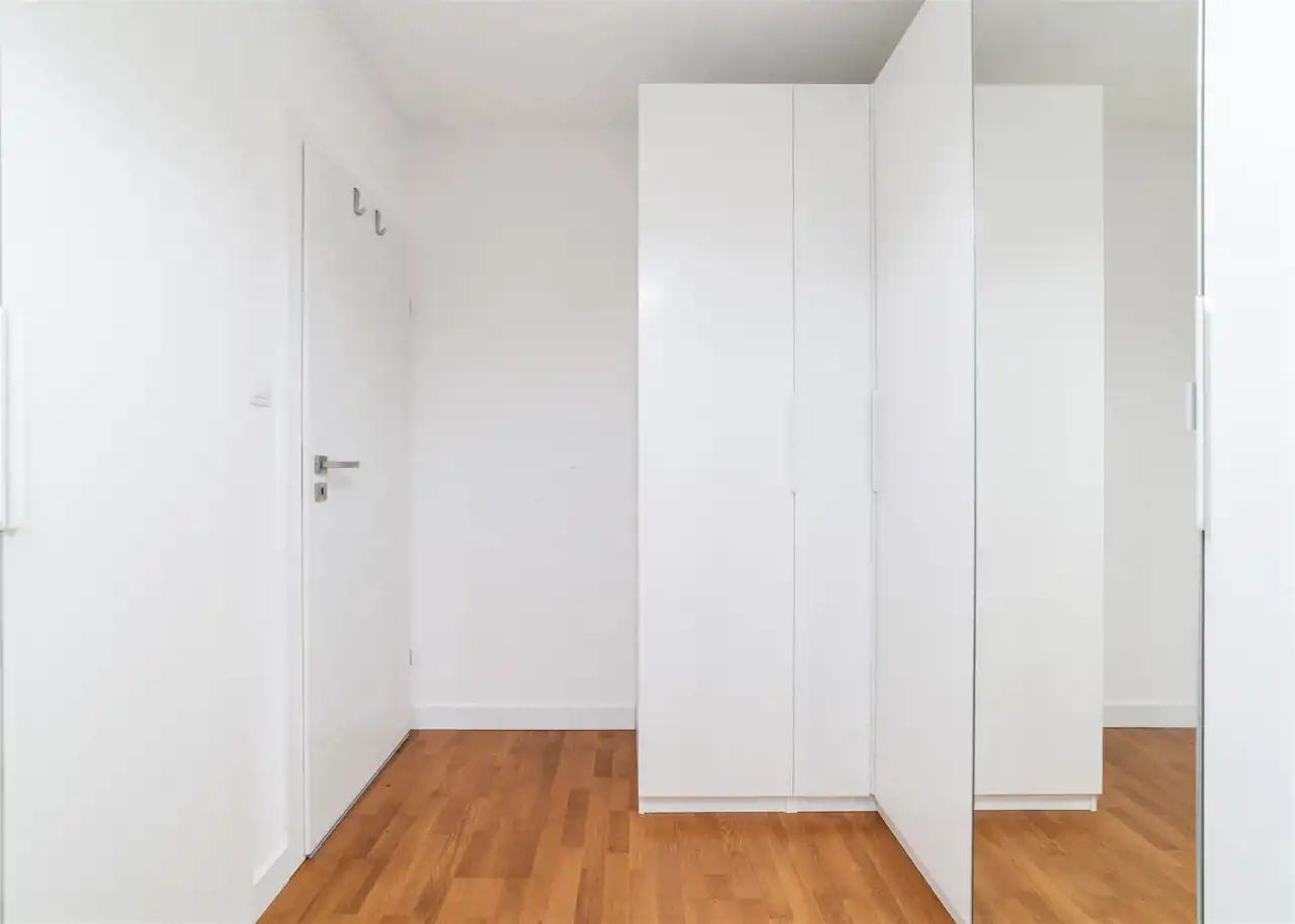 - korytarz z wieszakami i zabudowaną szafą (jedyne mieszkanie na piętrze)