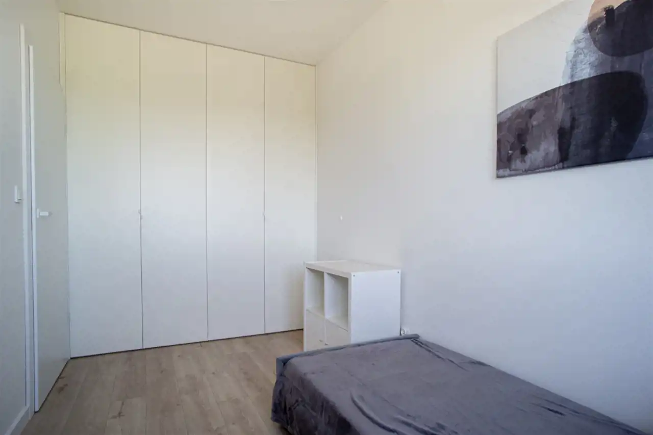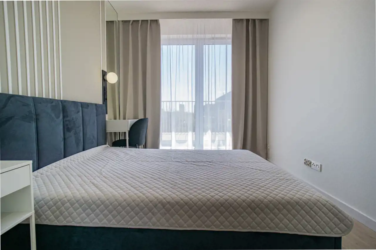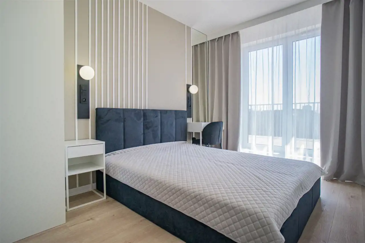 Do tego dwa pokoje sypialne, jeden wyposażony w komfortowe łóżko dwuosobowe oraz zabudowy i toaletkę, drugi w pojedyncze łóżko oraz biurko. Ostatni pokój wyposażony w biurko do pracy zdalnej, możliwość rearanżacji pomieszczeń.