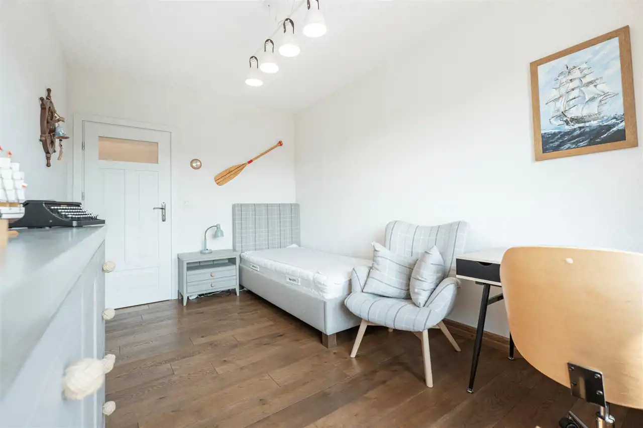 - Dodatkowy pokój, który doskonale sprawdzi się jako funkcjonalne biuro do pracy zdalnej lub elegancka sypialnia dla dziecka czy gości.