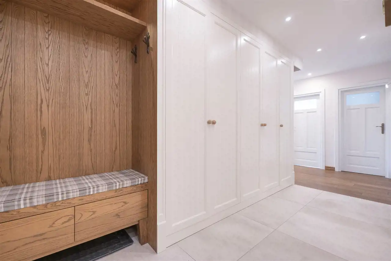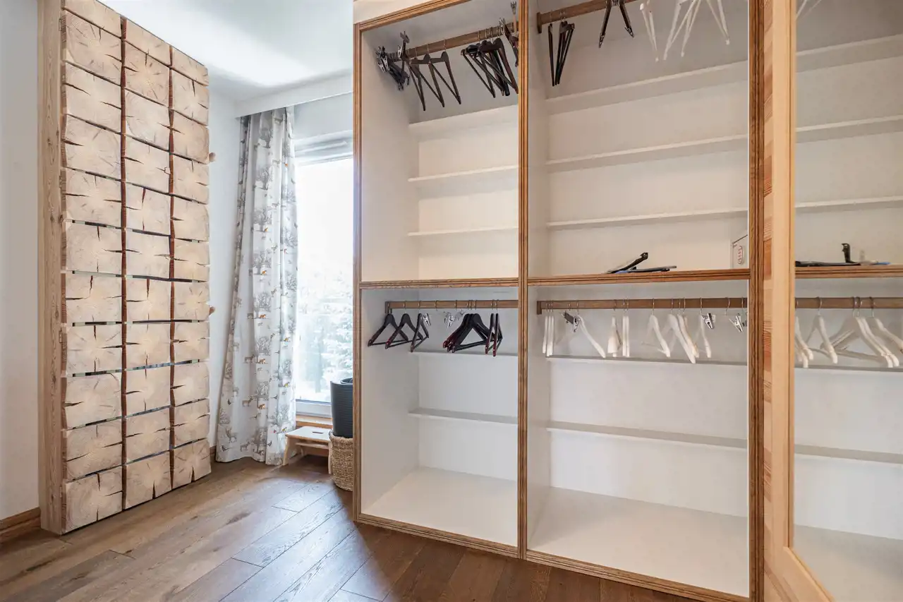 - Praktyczną garderobę, gwarantującą dużą przestrzeń do przechowywania i organizacji.