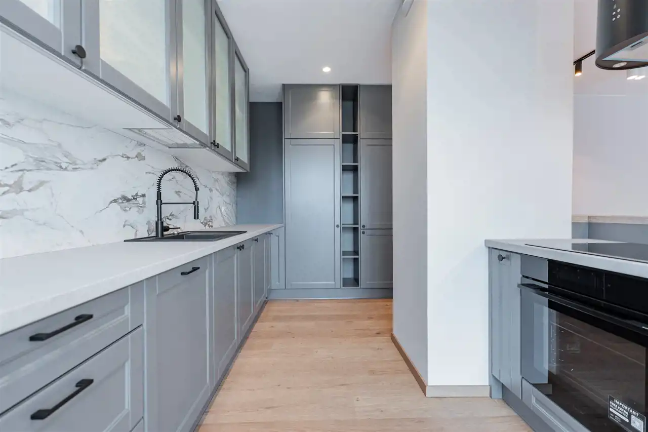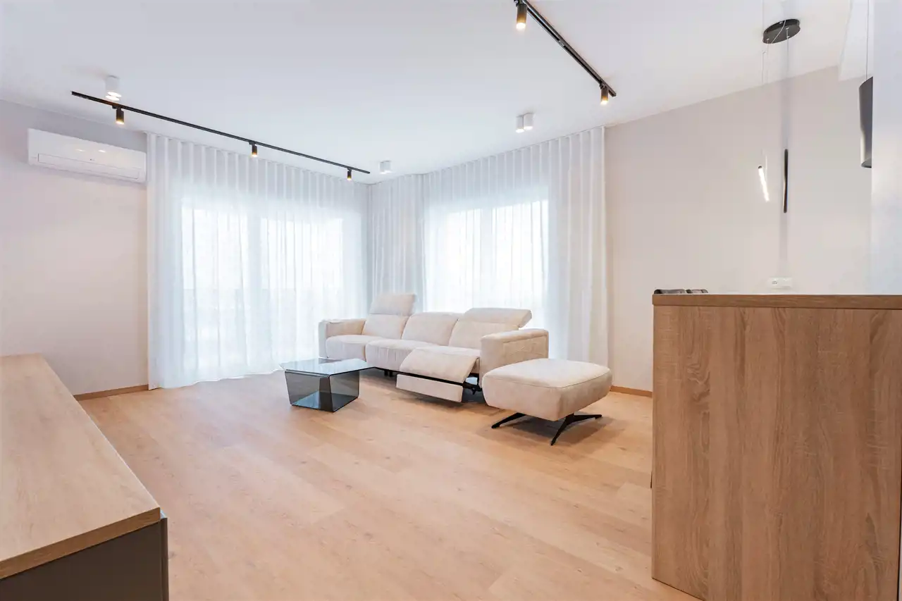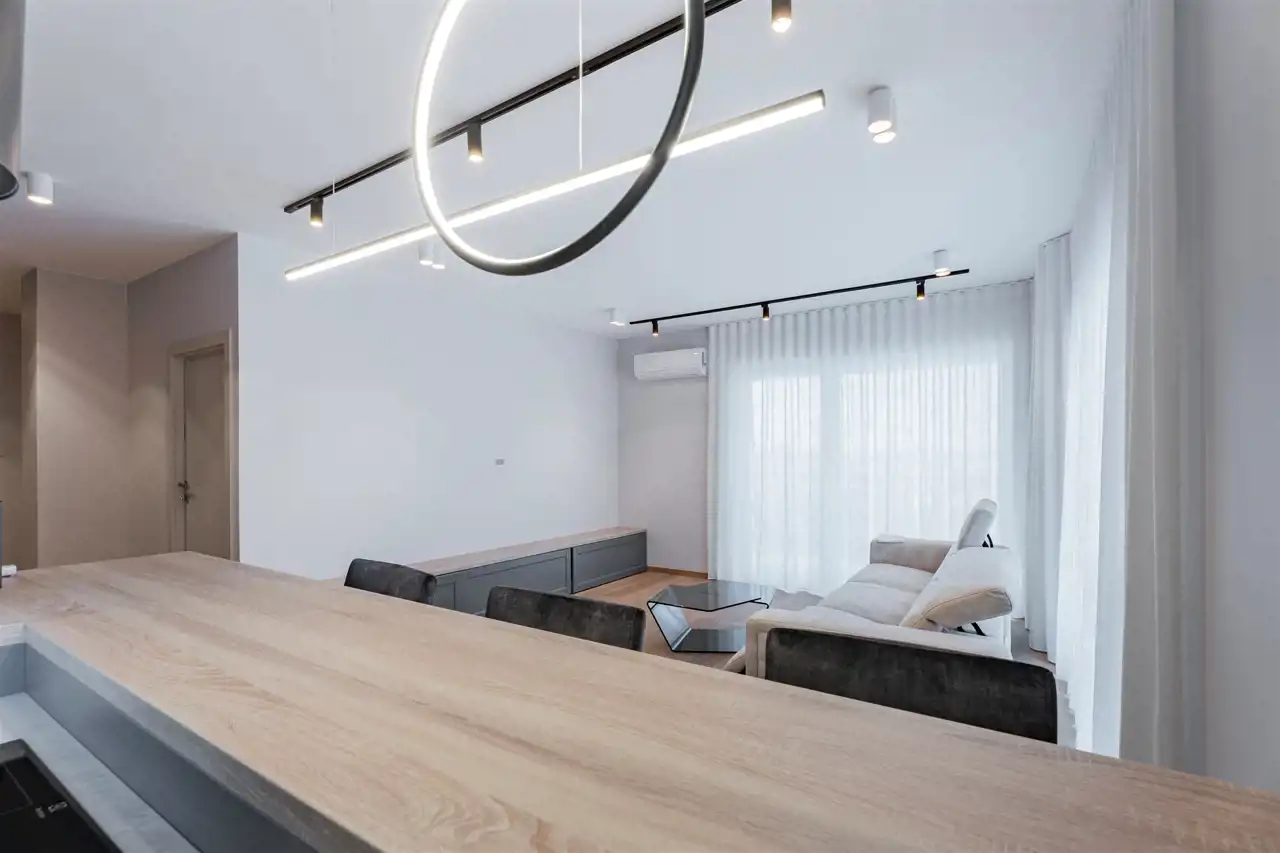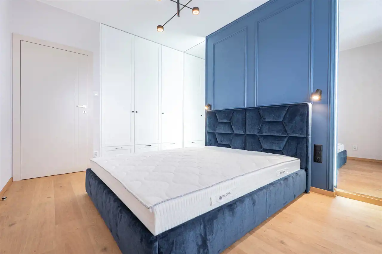 Mieszkanie wykończone w wysokim standardzie, z dbałością o każdy szczegół. Liczne punkty świetlne nadają przytulnego klimatu, doskonale doświetlając przestrzeń.