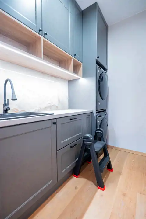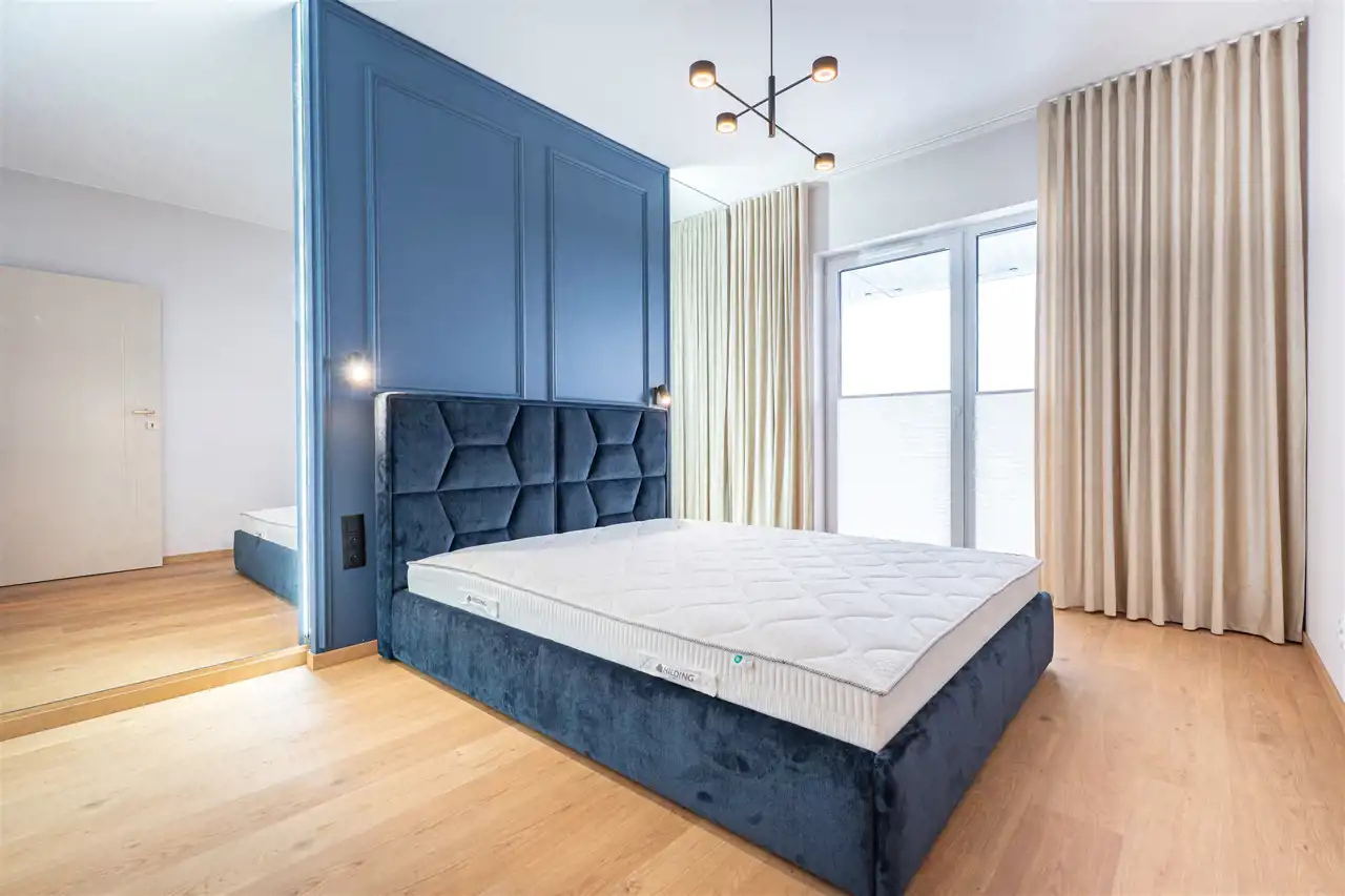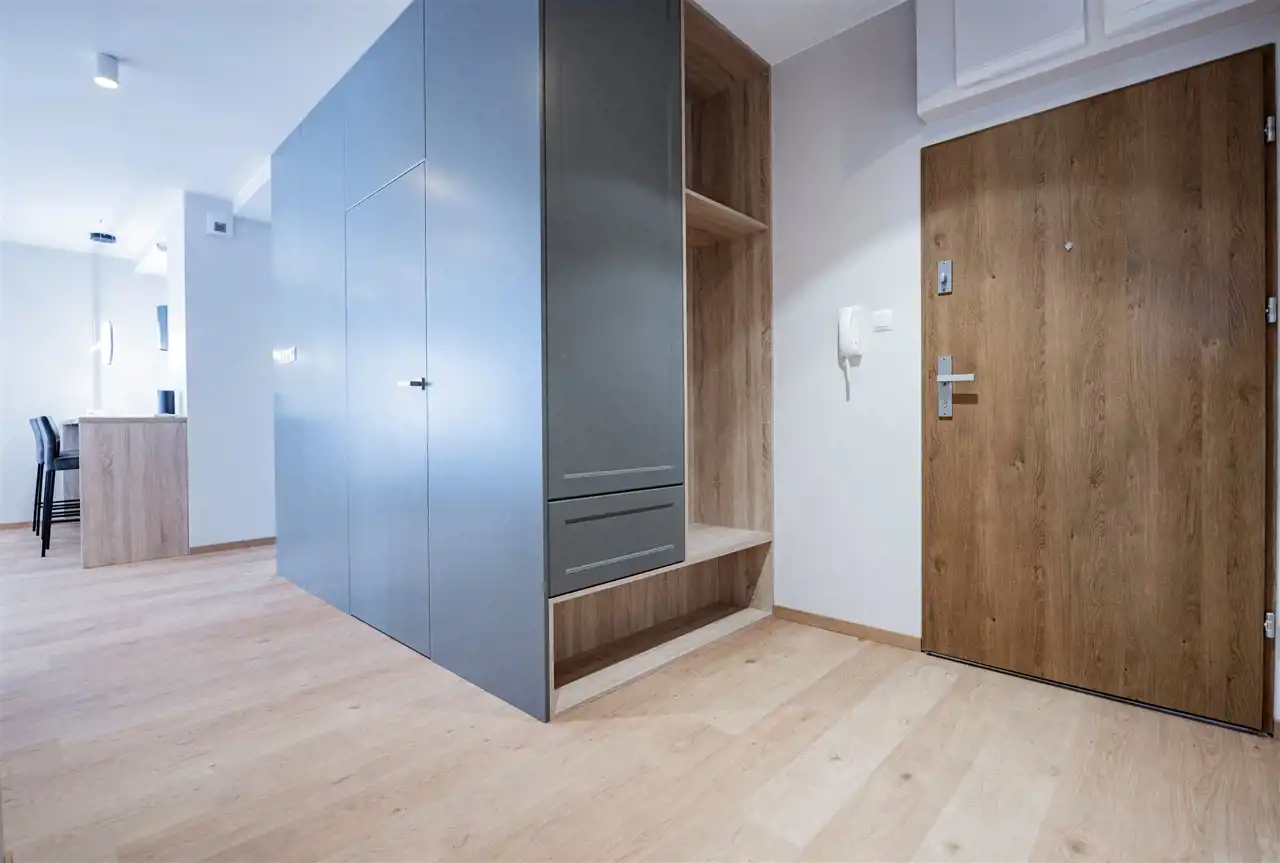 Apartament w pełni wyposażony - w salonie znajdziemy elegancki, wygodny komplet wypoczynkowy Kler (z regulowanym podnóżkiem) stolik kawowe, szafkę RTV wraz z zabudową. Aneks kuchenny wyposażony we wszystkie niezbędne sprzęty m.in. lodówkę z zamrażarką, zmywarkę, płytę indukcyjna, piekarnik elektryczny (wszystkie sprzęty wysokiej jakości firmy HAIER). Zabudowa kuchenna posiada liczne, pojemne szafki na przechowywanie, dodatkowo mieszkanie zostało wyposażone w wyspę kuchenną, funkcjonalnie łączącą przestrzeń pomiędzy kuchnią, a salonem. W sypialni znajdziemy łóżko 160/200 oraz pakowną szafę. Drugi pokój pusty do aranżacji wg. potrzeb Najemcy. Łazienka wyposażona została w prysznic z deszczownicą, umywalkę z szafką oraz toaletę. Pomieszczenie gospodarcze posiada pralkę oraz suszarkę firmy HAIER, zabudowę z licznymi szafkami na przechowywanie oraz zlew. W przedpokoju dodatkowa szafa oraz toaletka.