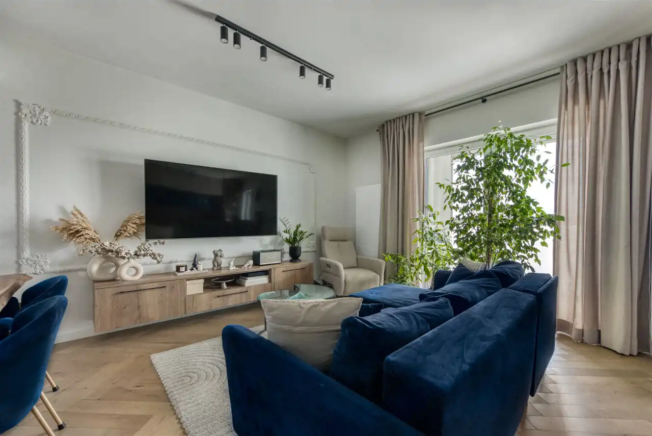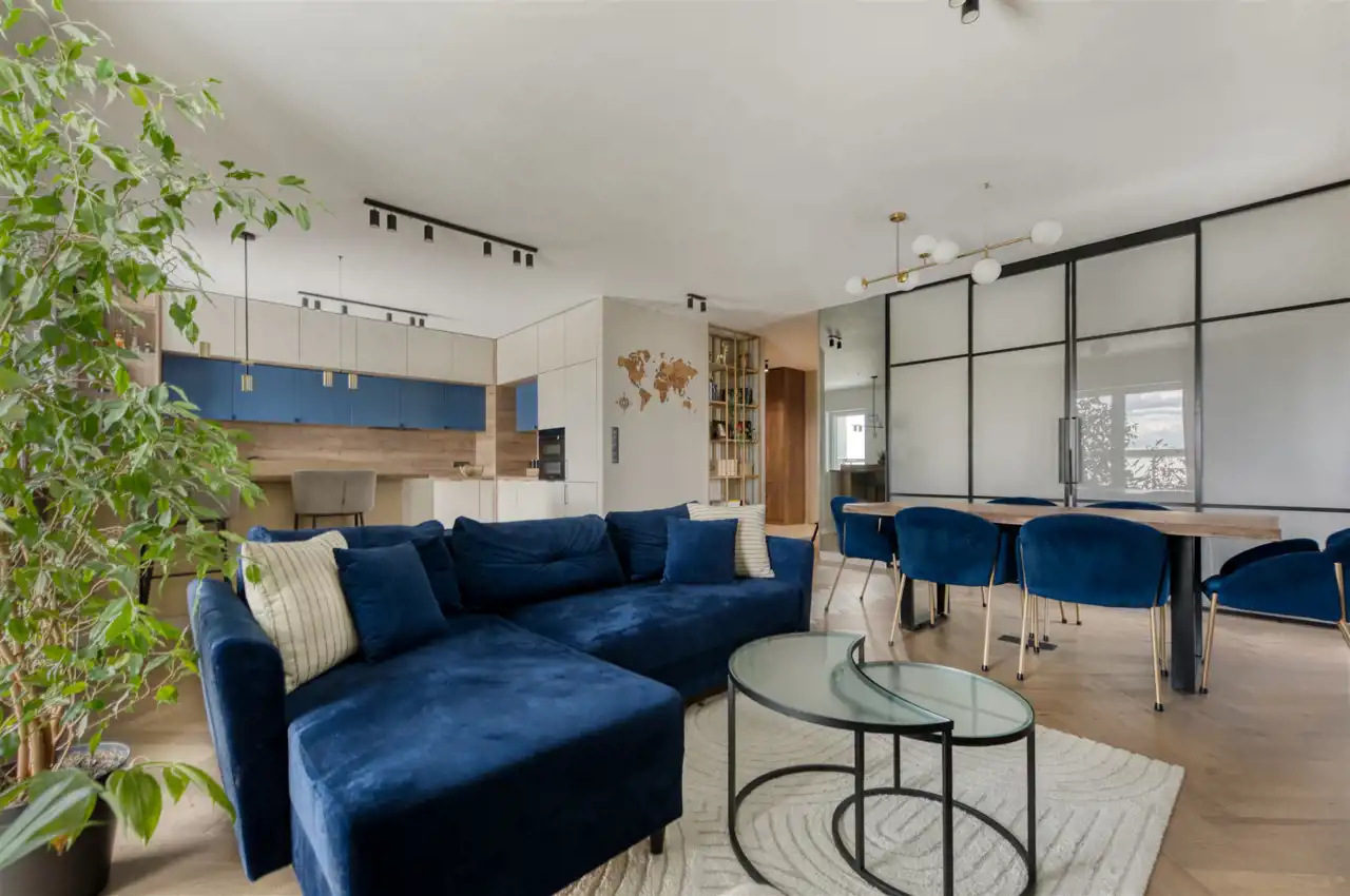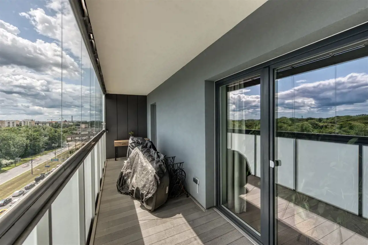 Przeszklony balkon z widokiem na park, panoramę miasta i usytuowanie w centrum i nieszablonowe, nowoczesne wykończenie to tylko nieliczne walory tego funkcjonalnego i ekskluzywnego apartamentu.