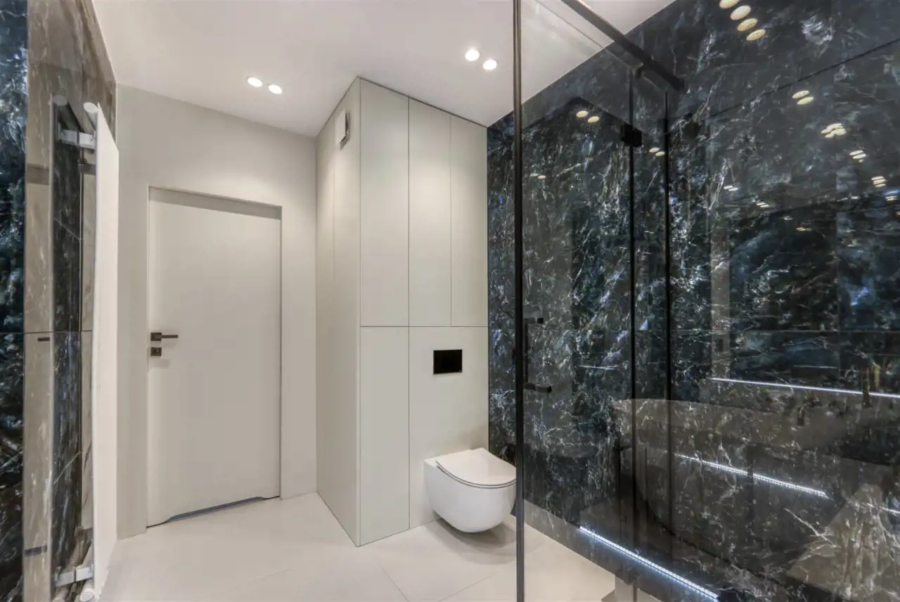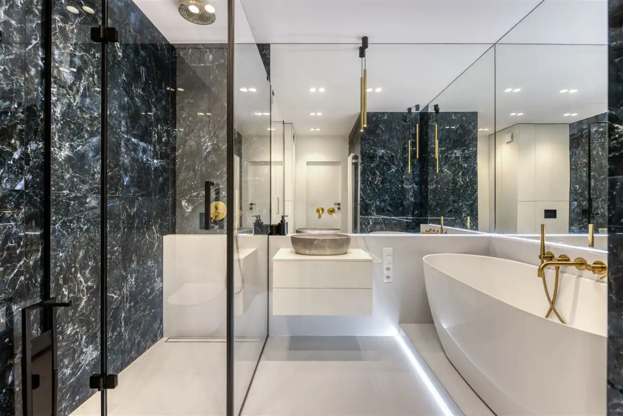 - nowoczesną, przestronną łazienkę z WC wyposażoną w wannę oraz prysznic;