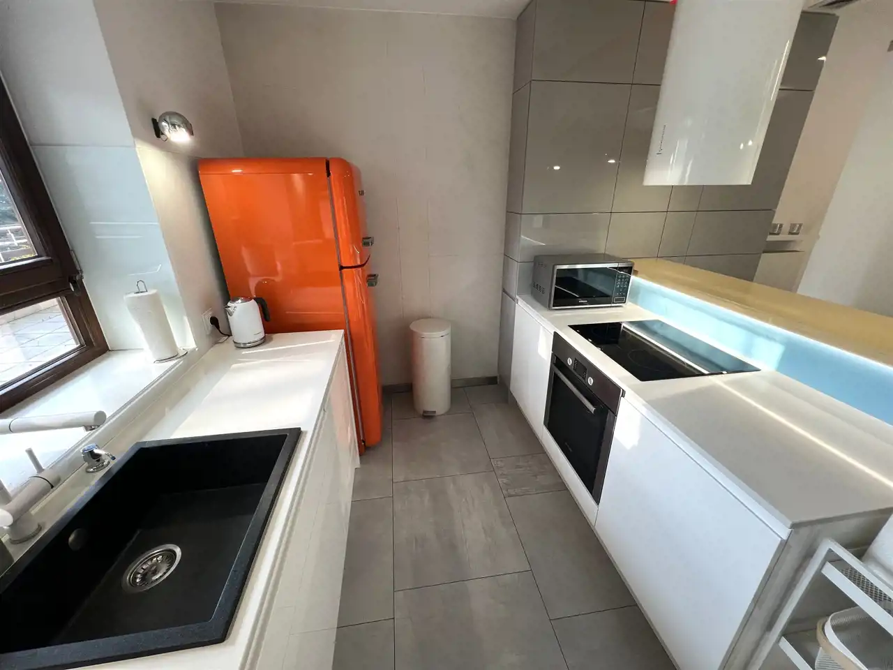 - ANEKS KUCHENNY: 9,23 m², w pełni umeblowana i wyposażona kuchnia, zmywarka, płyta indukcyjna + piekarnik, zmywarka,