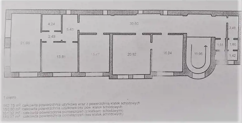 Prezentowany budynek posadowiony jest na działce o pow. ok. 507 m2. W jego skład wchodzi powierzchnia piwnic + powierzchnia parteru + powierzchnia piętra. Łączna powierzchni użytkowa to ok. 500 m2. (Załączony rzut jednej z kondygnacji w dodanych zdjęciach. Kondygnacje stanowią swoje odzwierciedlenie);