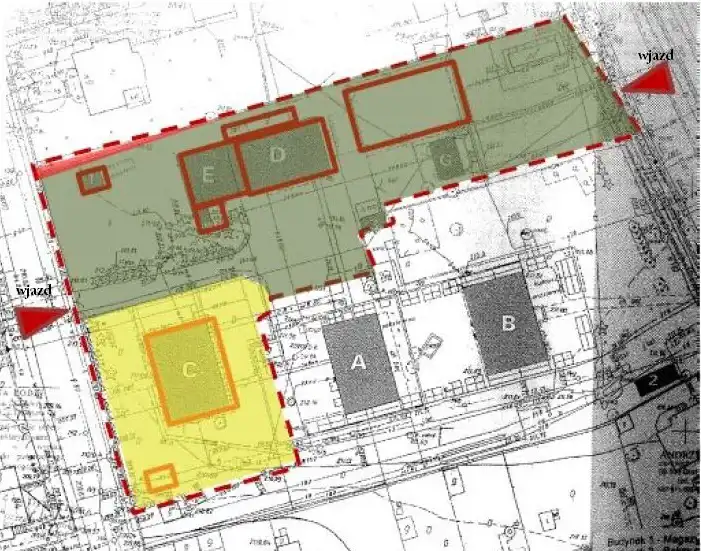 Na terenie nieruchomości usytuowany jest budynek biurowo-techniczny o powierzchni 1 306 m2, składający się z części A i B, połączonych ze sobą dawnym bunkrem.