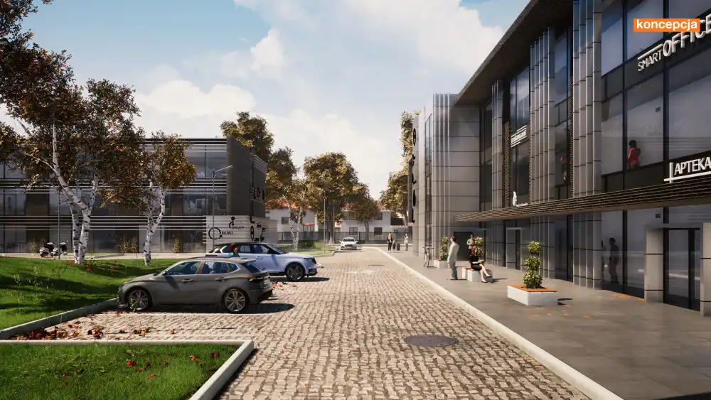 Na terenie nieruchomości możliwa jest budowa kompleksu biurowo-usługowego. Koncepcja zakłada powstanie 3 budynków: rozbudowę o jedną kondygnację