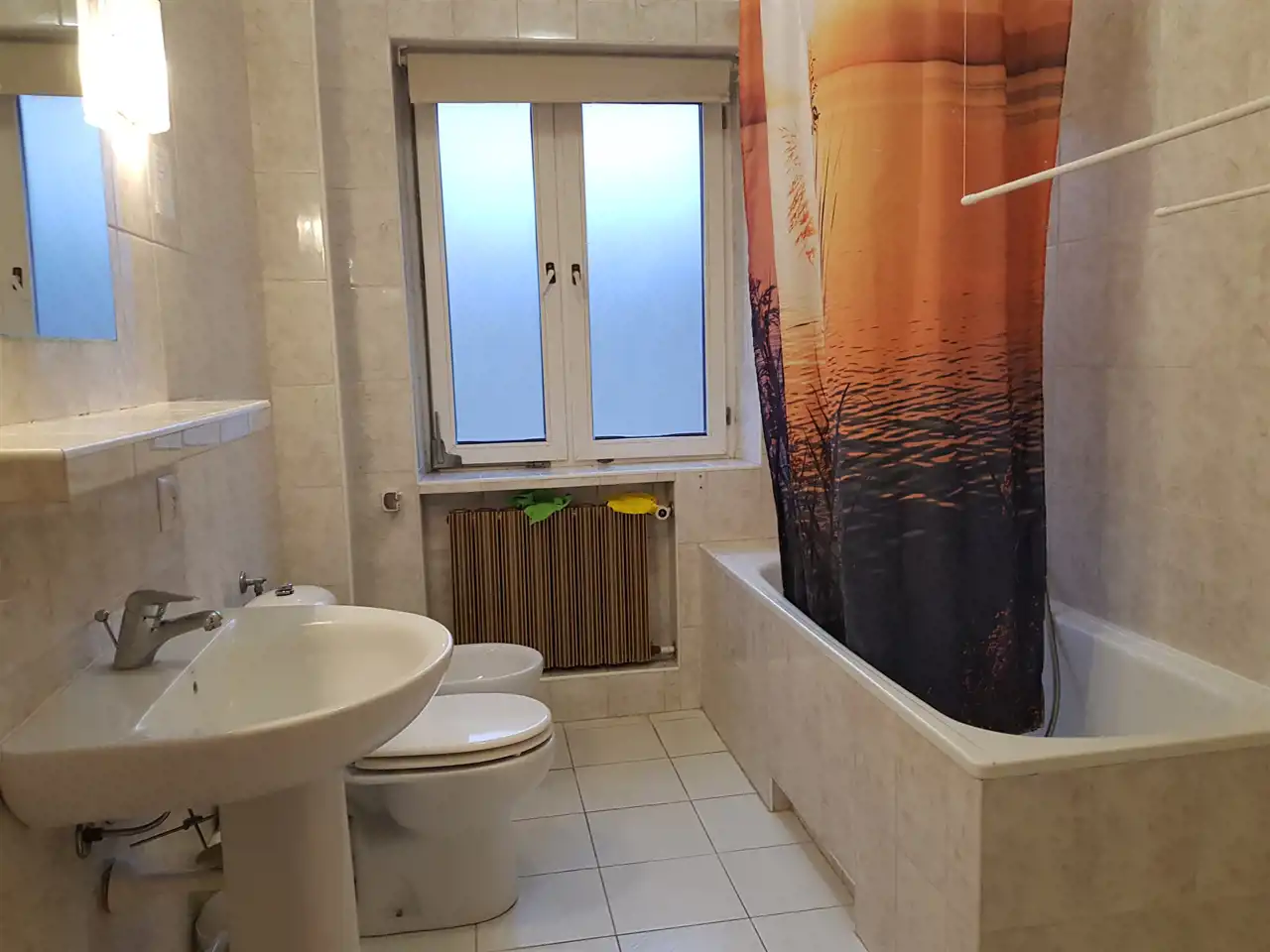 ŁAZIENKA Z WC - pomieszczenie z oknem, na wyposażeniu: WANNA, UMYWALKA, TOALETA, BIDET